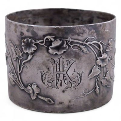 ROND DE SERVIETTE en argent à décor floral, chiffré Minerve …