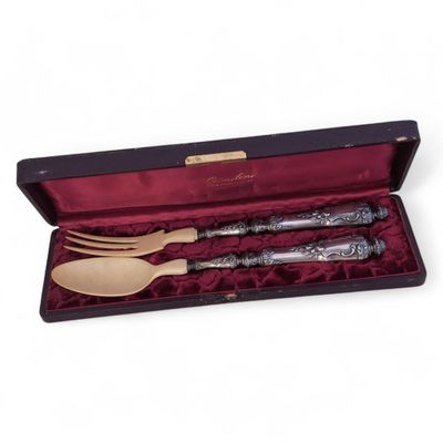 COUVERT DE SERVICE A SALADE en argent fourré et ivoirine, mo…