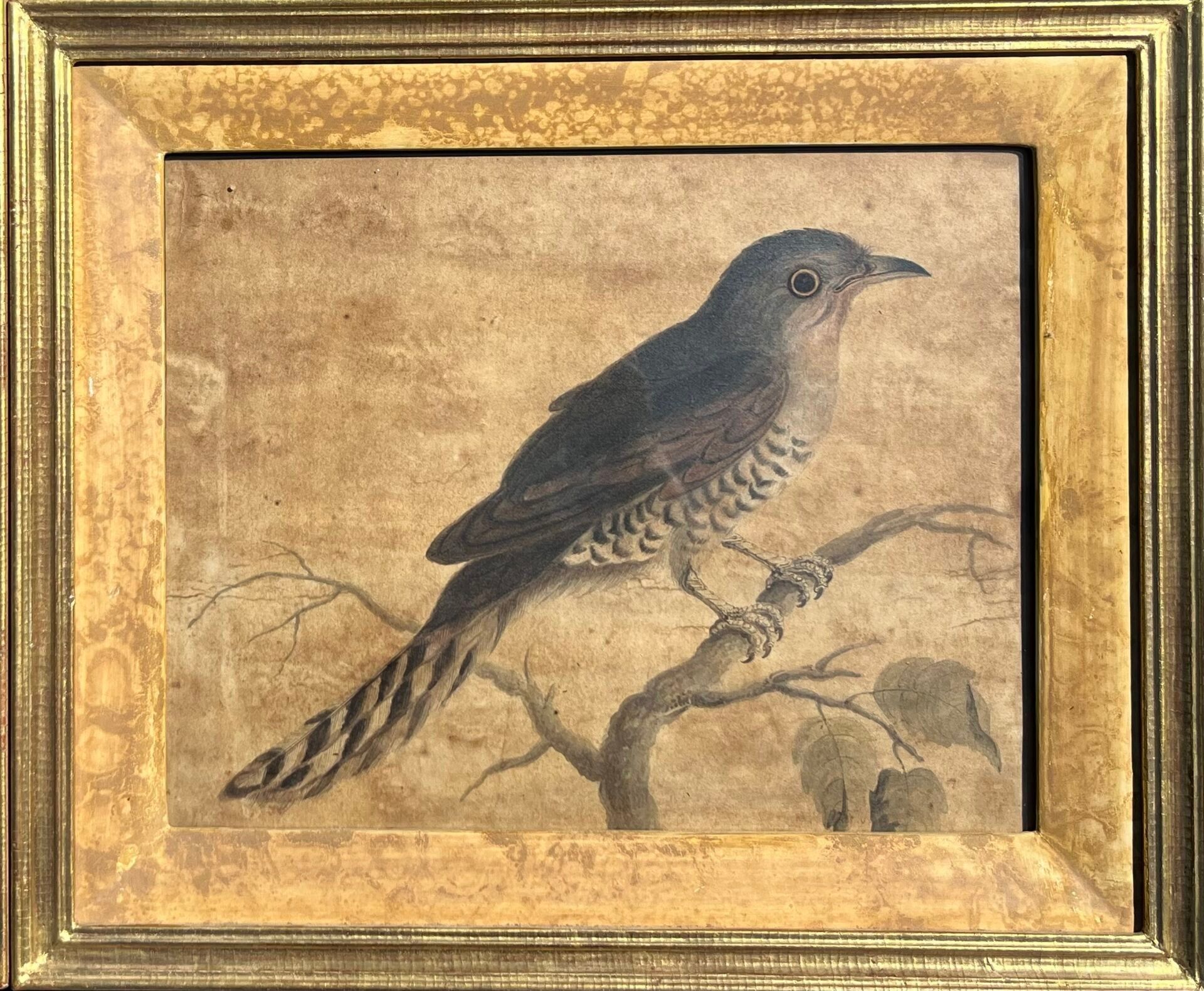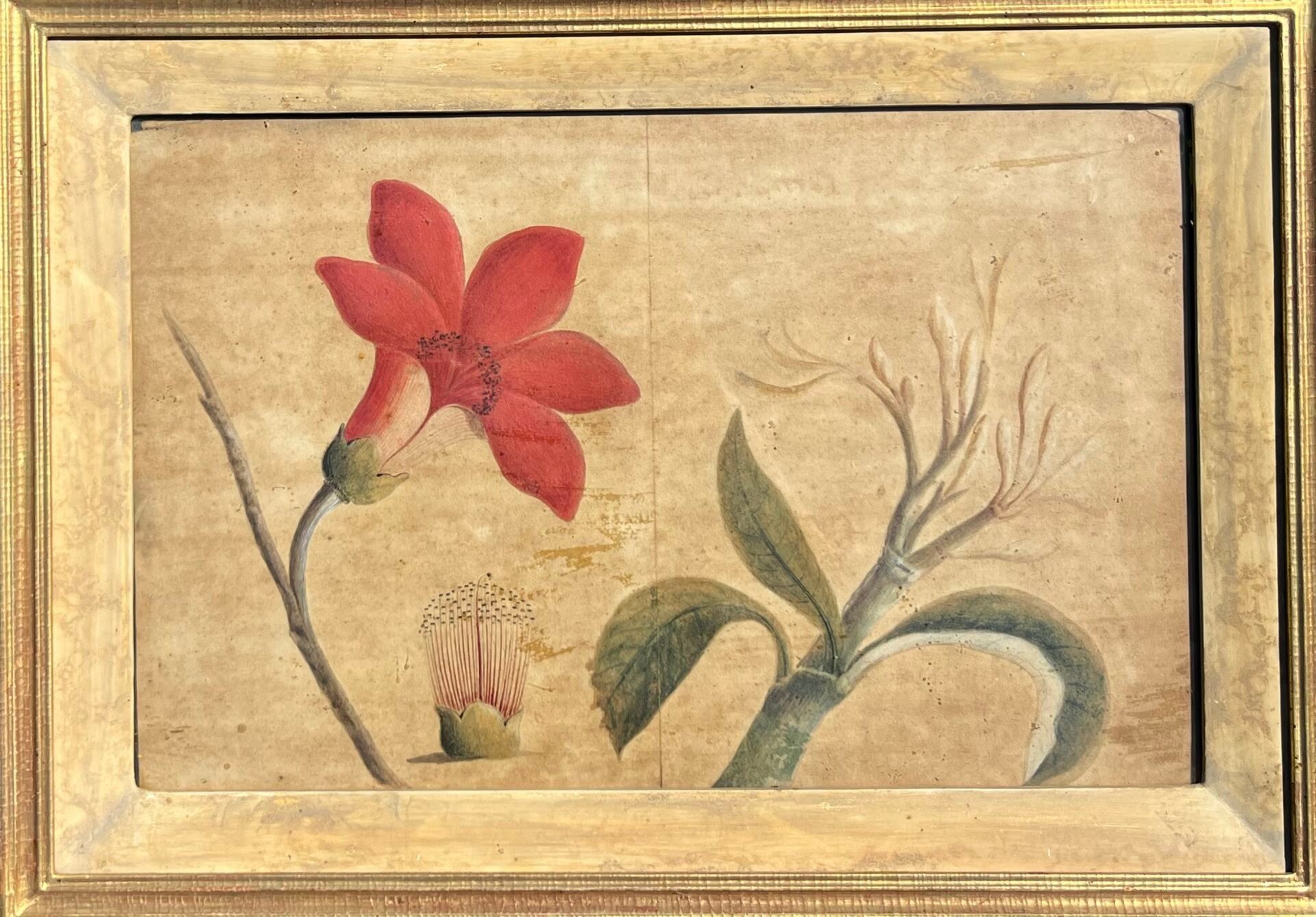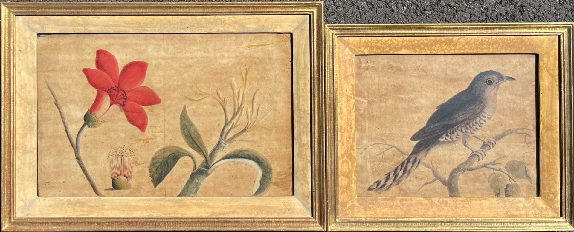 [Animalia]. [Botanique]. LOT de deux aquarelles rehaussées à la mine de plomb représentant un oiseau branché et étude de fleurs.