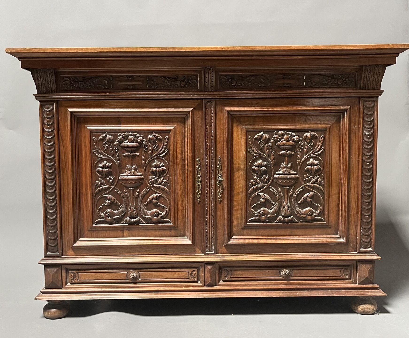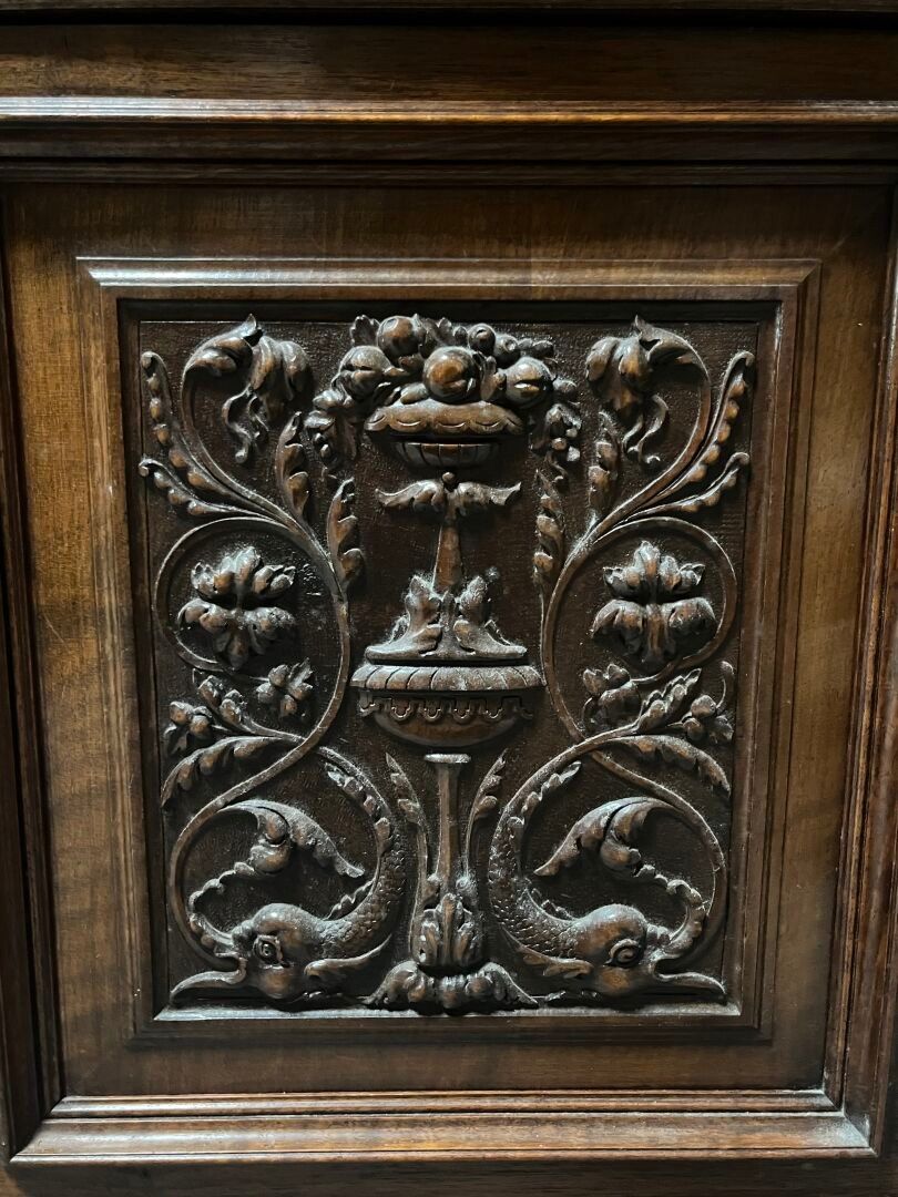 BUFFET à hauteur d'appui en bois sculpté ouvrant par deux va…