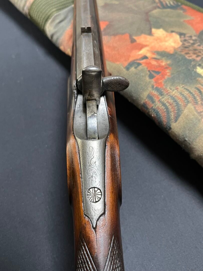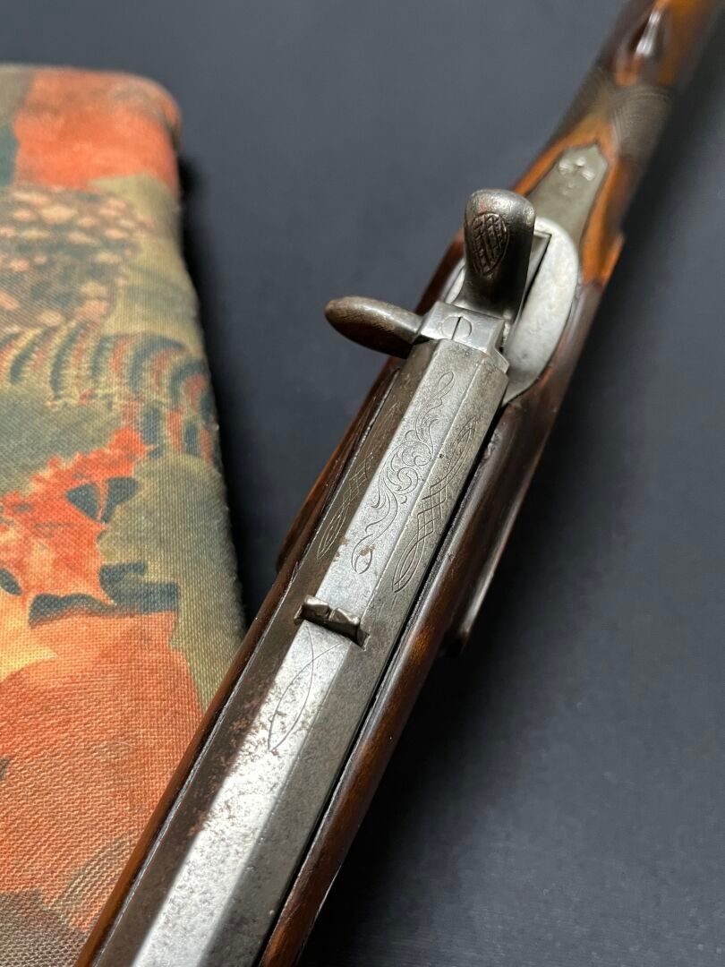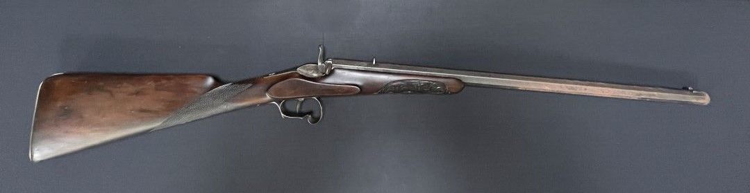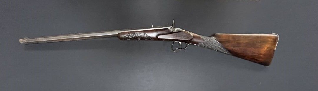 PETITE CARABINE, du XIXe siècle, système à percussion, canon en fer gravé à l'acide, crosse anglaise en noyer sculpté.