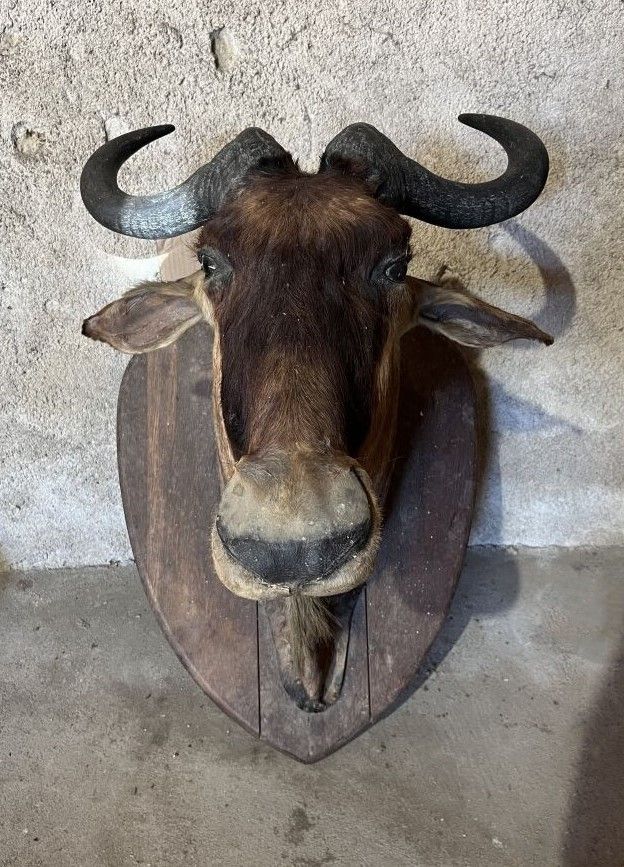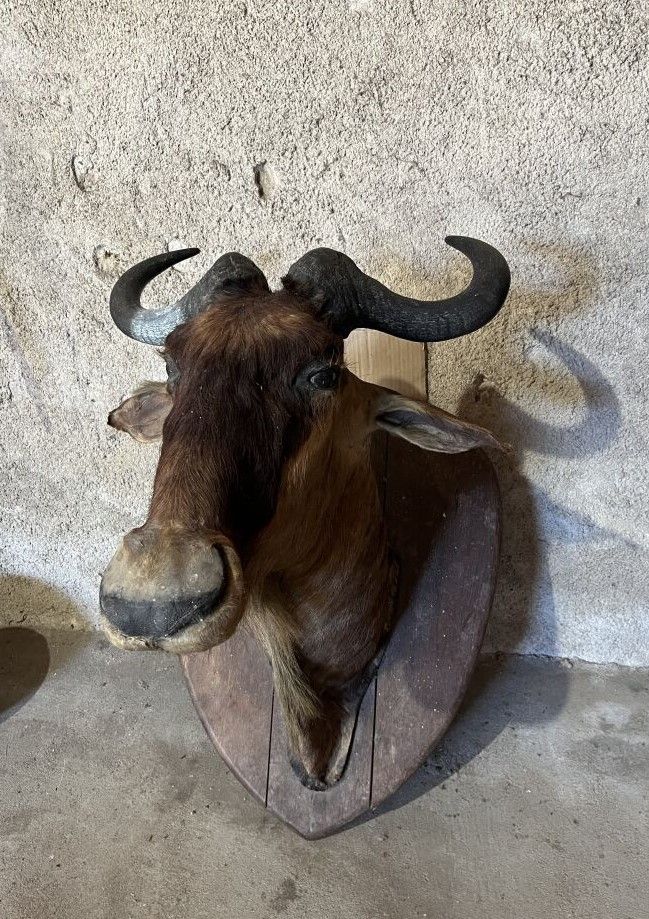 TROPHEE de buffle sur écusson. Tête naturalisée.