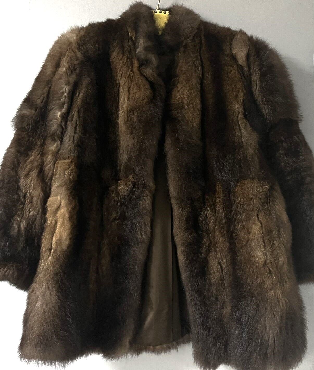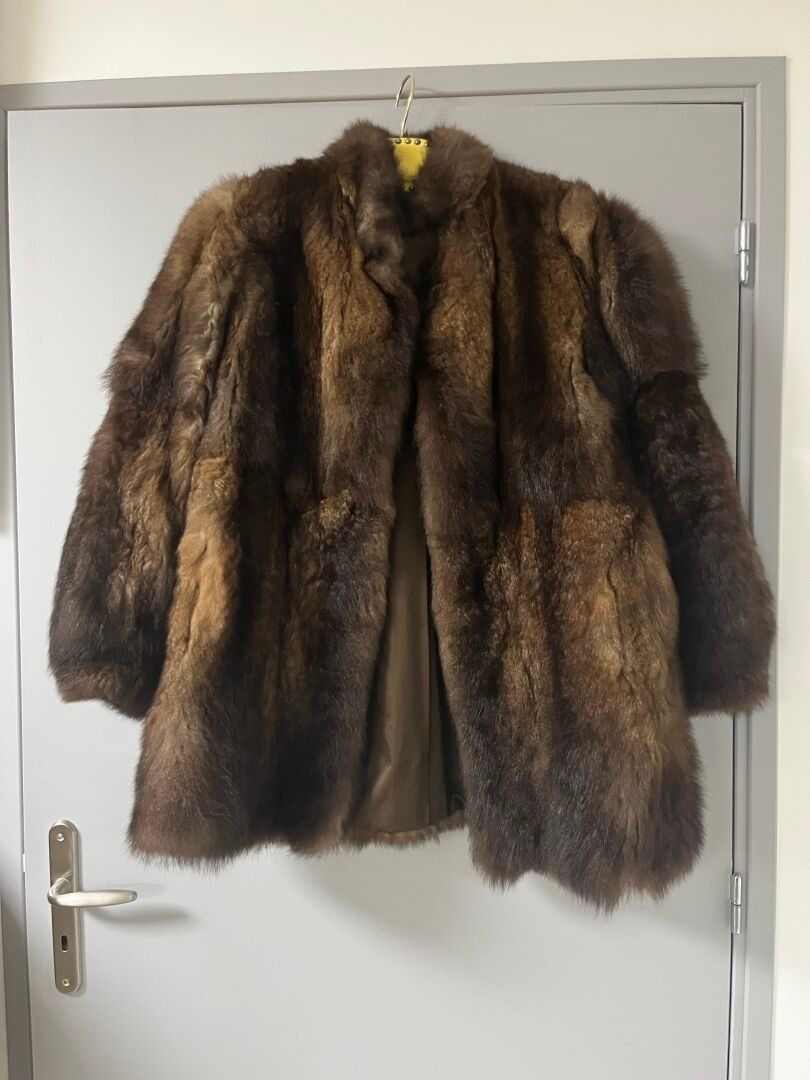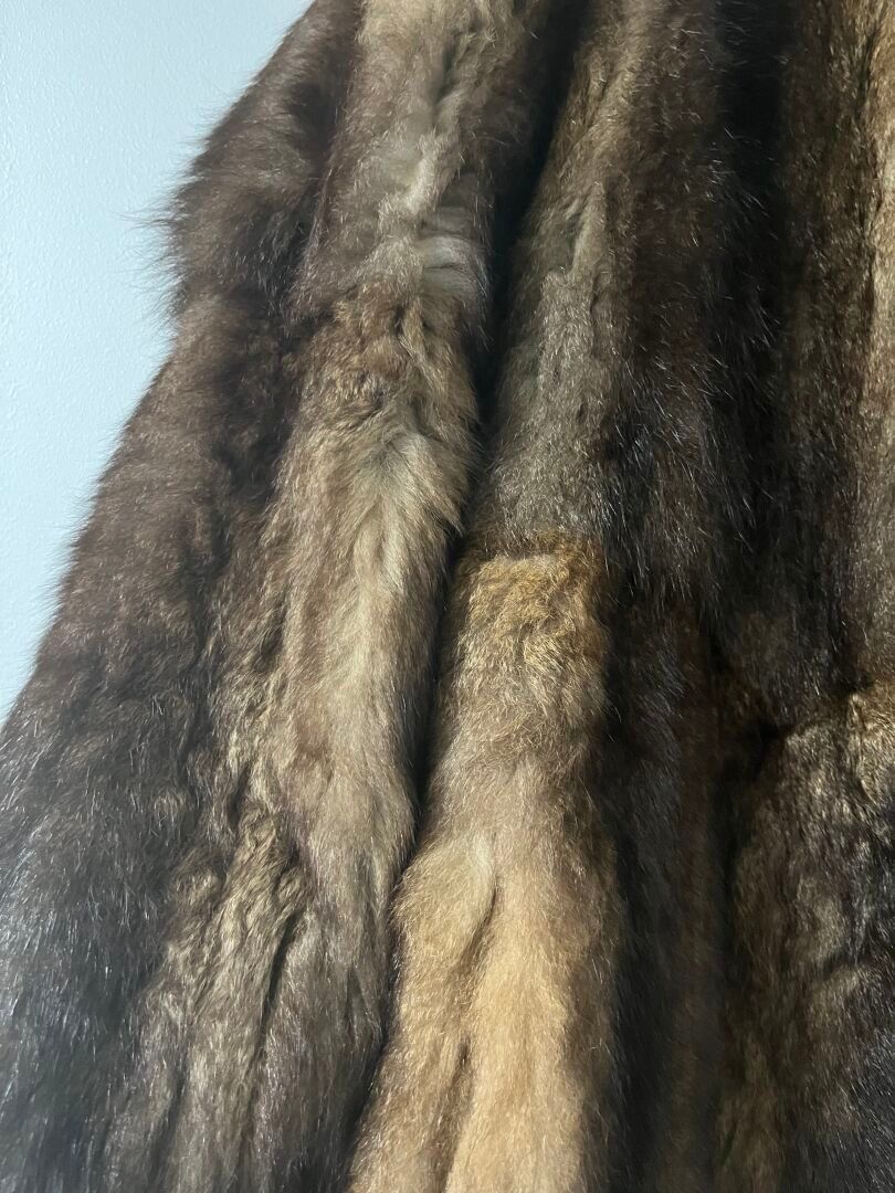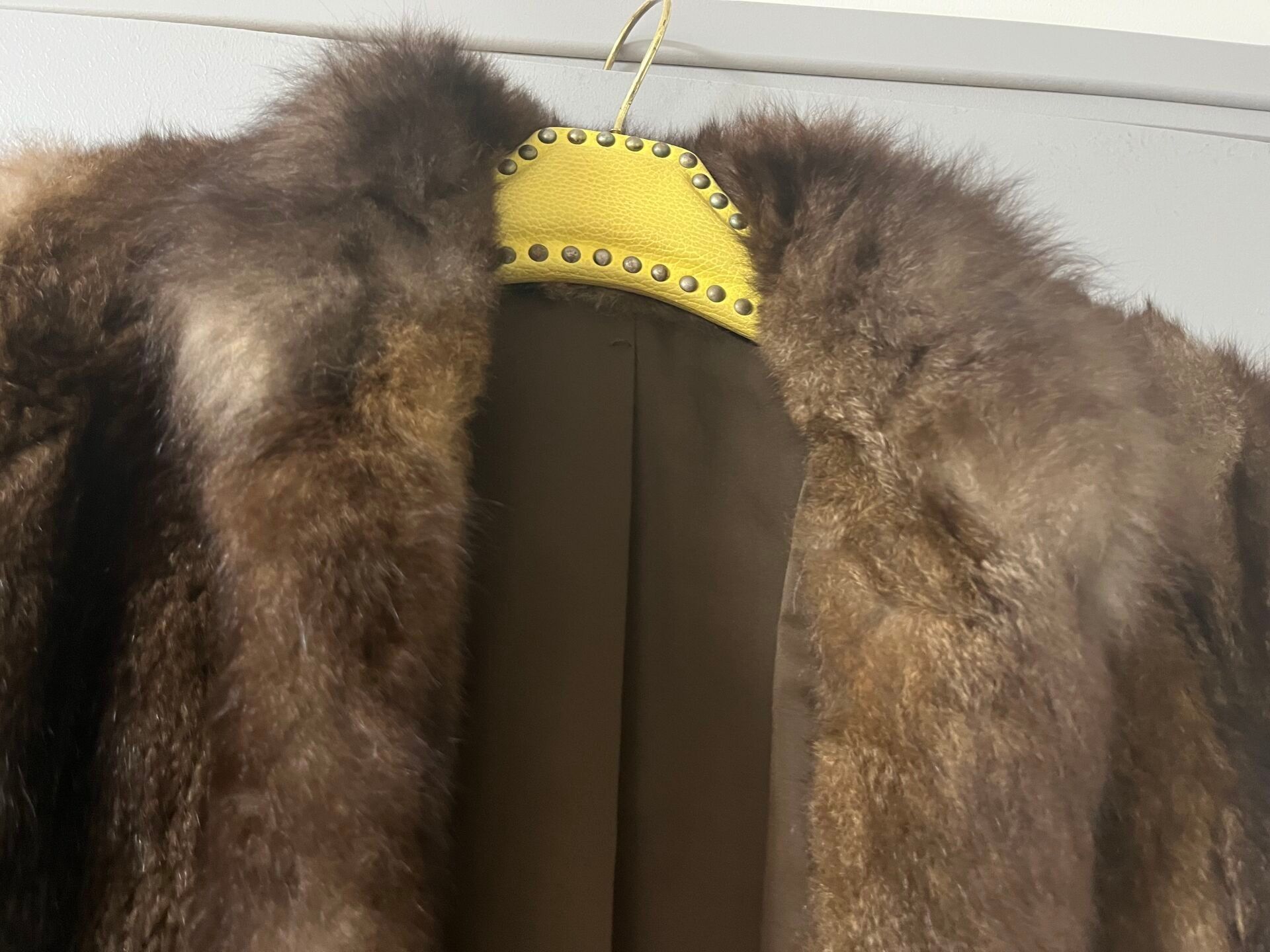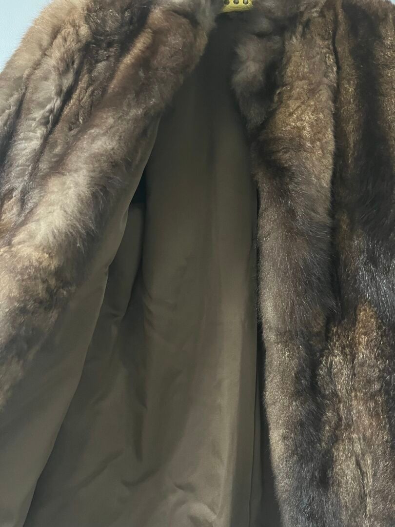 MANTEAU mi-long en fourrure de vison, col montant et attaches à agrafes.