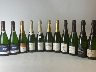 10 bouteilles de vin pétillant dont Crémant de Loire, Lancel…