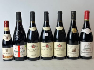 6 bouteilles et une demi bouteille de Rhône et Beaujolais ro…