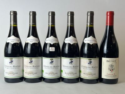 6 bouteilles de Côtes du Rhône comprenant : - 5 CHAPOUTIER -…