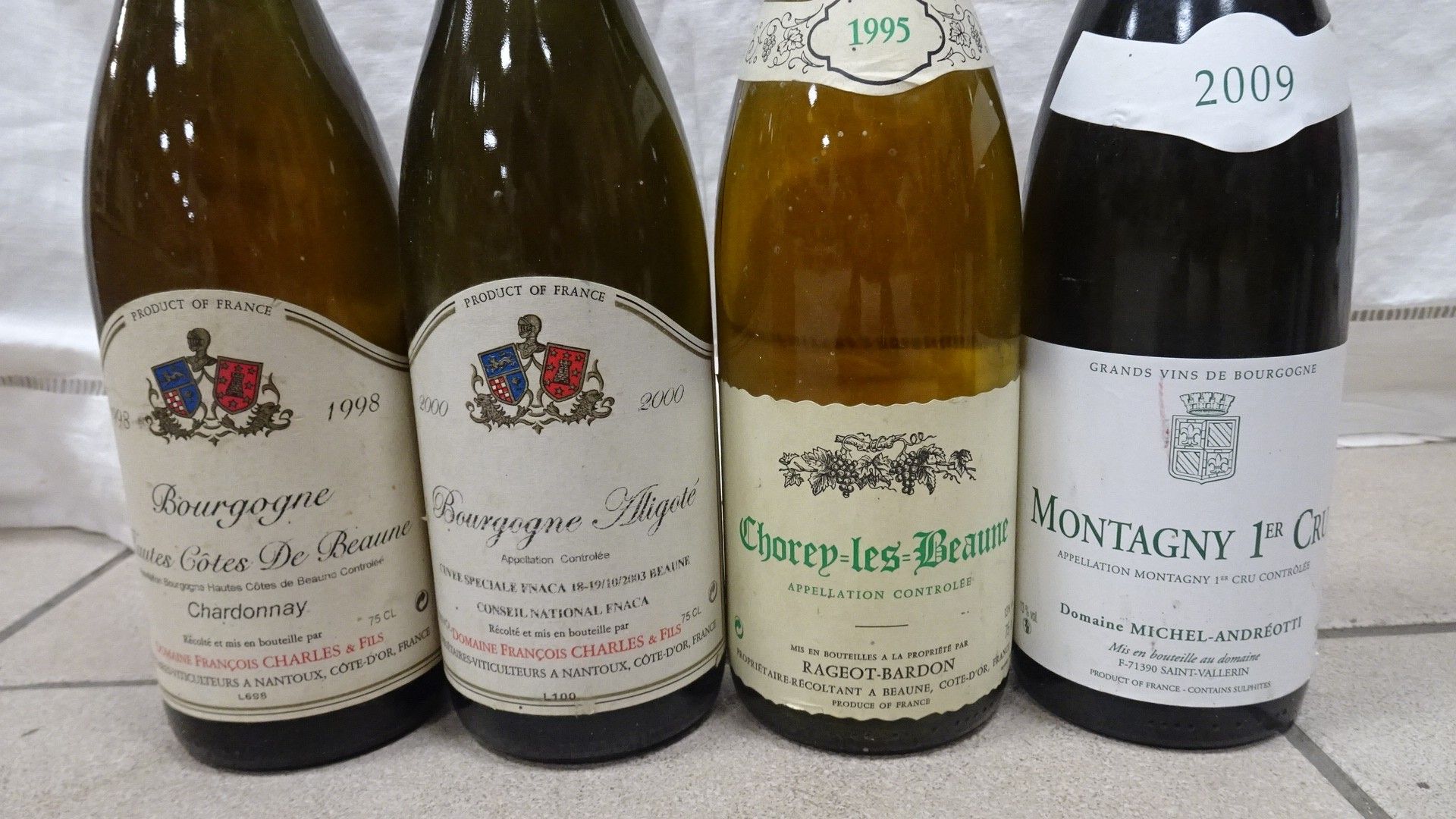 Lot de 4 Bts blanc : 1/Hautes Côtes de Beaune + 1/Aligoté. Charles. 1998/2000 + 1/Chorey les Beraune. Rageot Bardon. 1995 + 1/Montagny. Andreotti. 2009