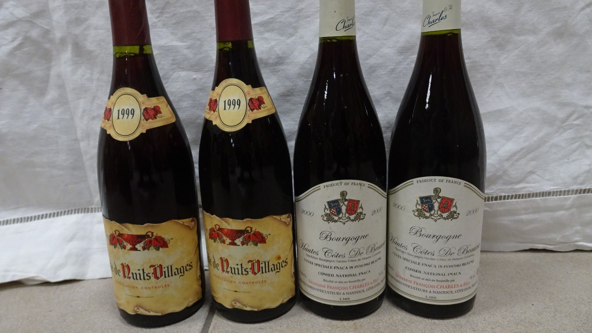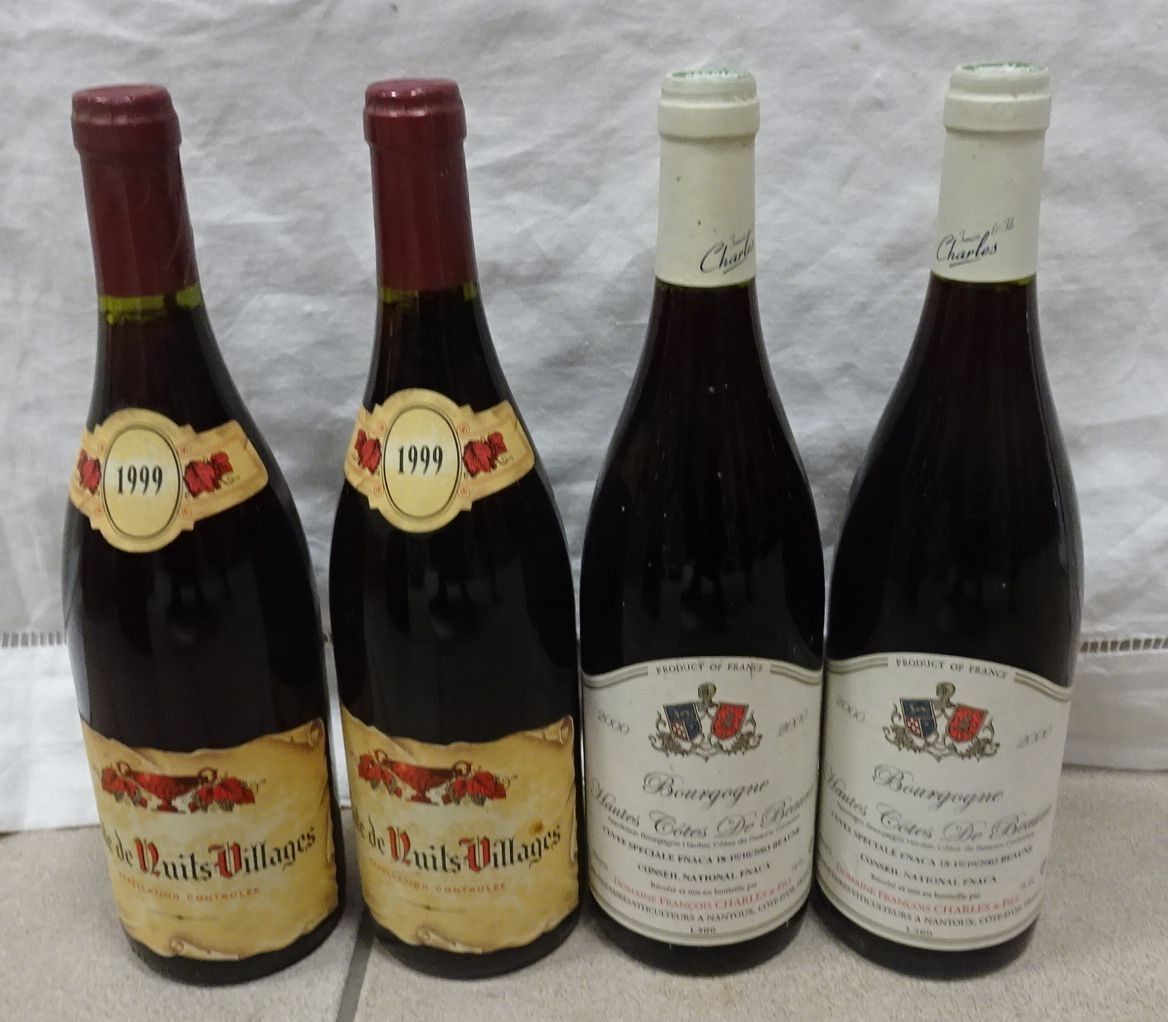 Lot de 4 Bts : 2/Côtes de Nuits Village. 1999 + 2/Hautes Côtes de Beaune. François Charles. 2000