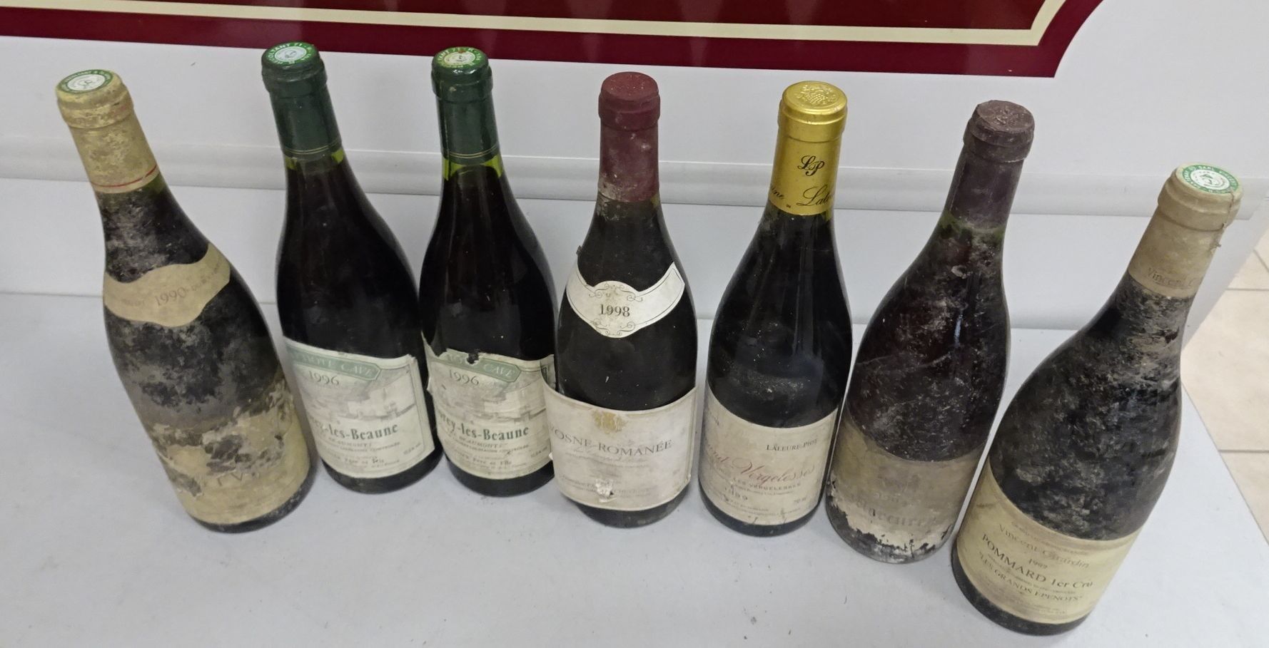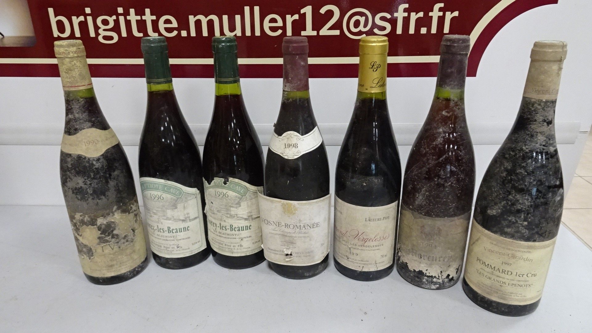 Lot de 7 bts : 2/Chorey les Beaune. 1996 + 1/Vosne Romanée. 1998 + 1/Pernand Vergelesses. 1999 + 1/Mercurey. + 1/Givry. 1990 + 1/Pommard