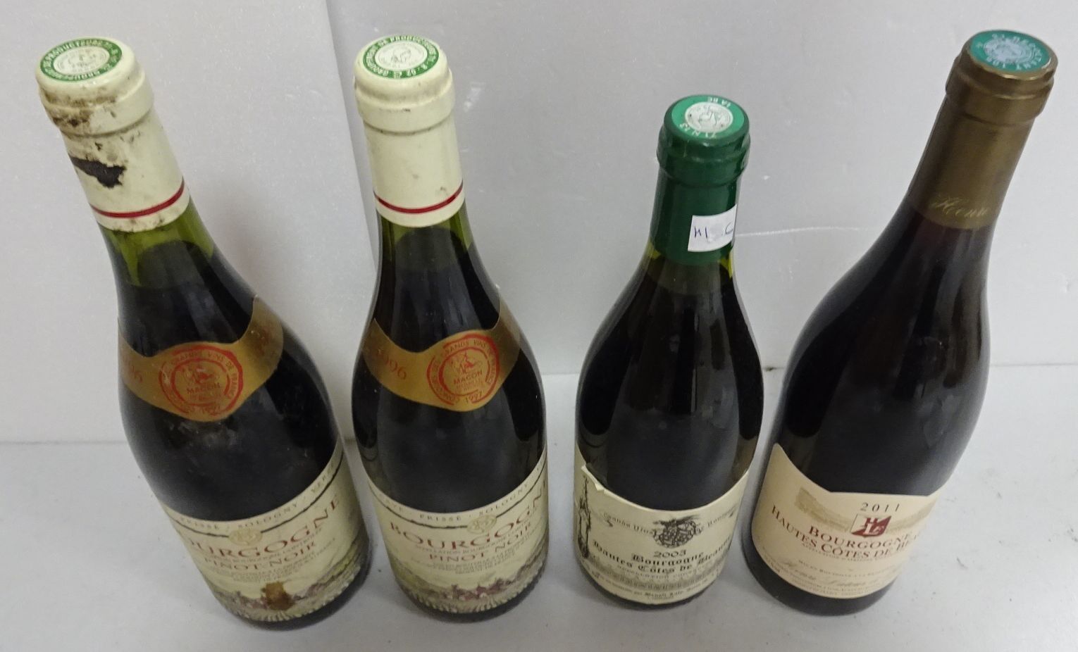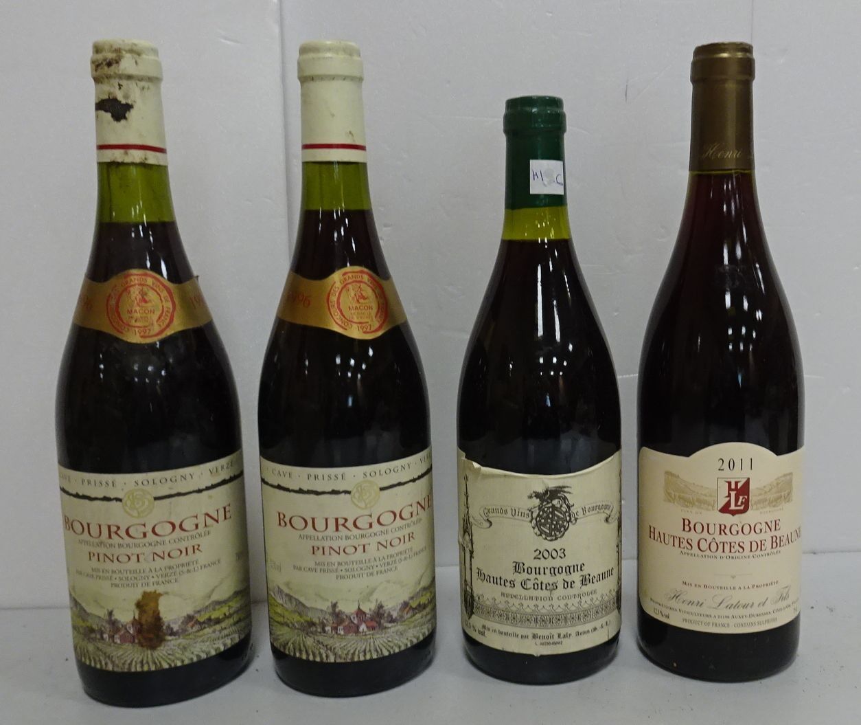 Lot de 4 bts : 2/Côtes de Beaune + 2/Bourgogne. 1996 à 2011
