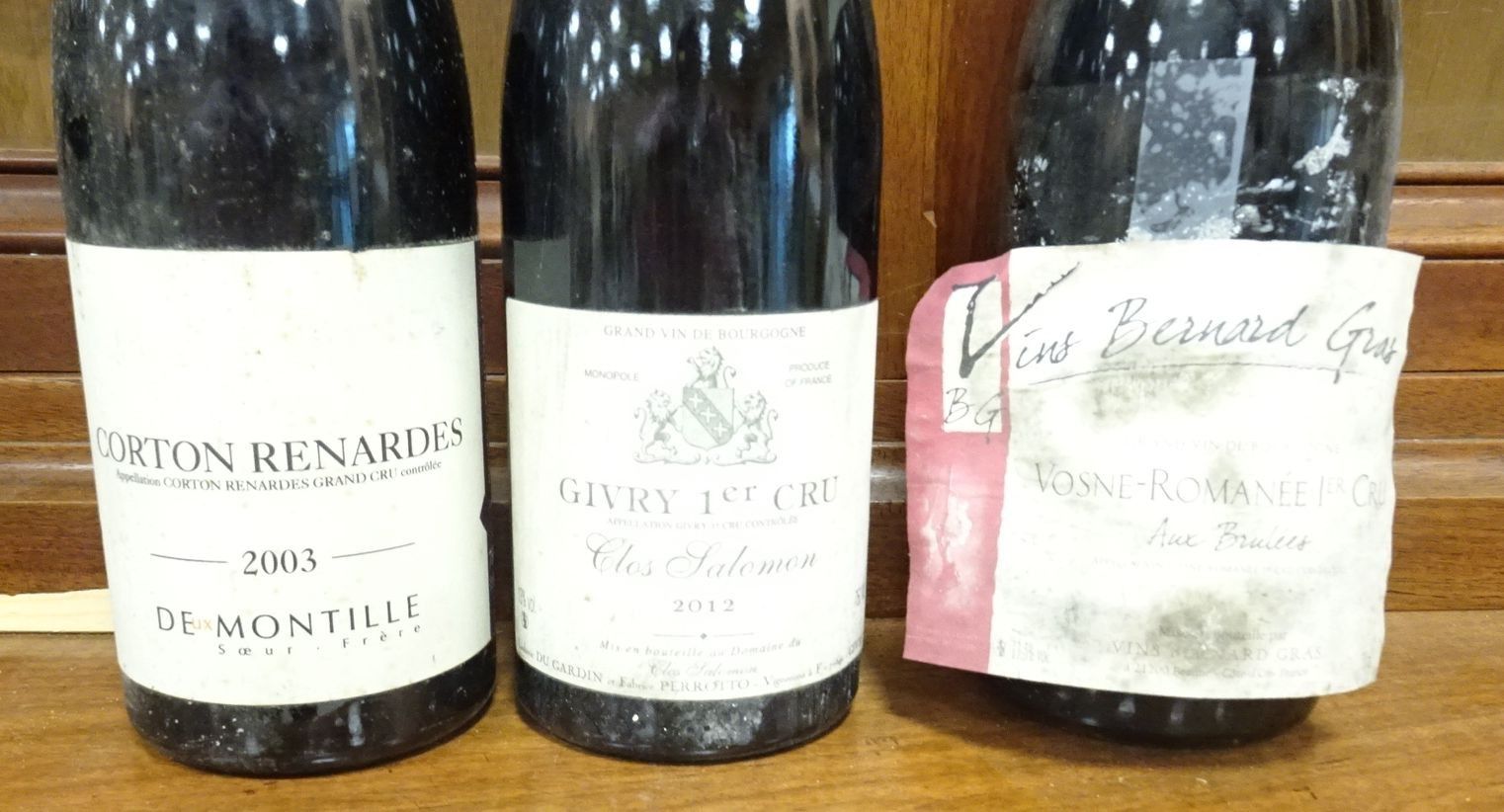 Lot de 3 Bts : Corton Renardes. de Montille. 2003 + 1/Givry. Clos Salomon. Perrottto. 2012 + 1/Vosne Romanée. Gras. 1998