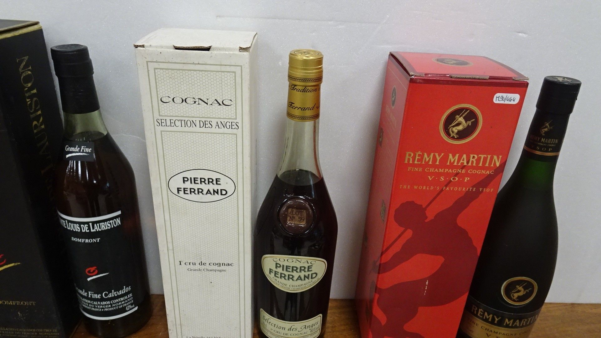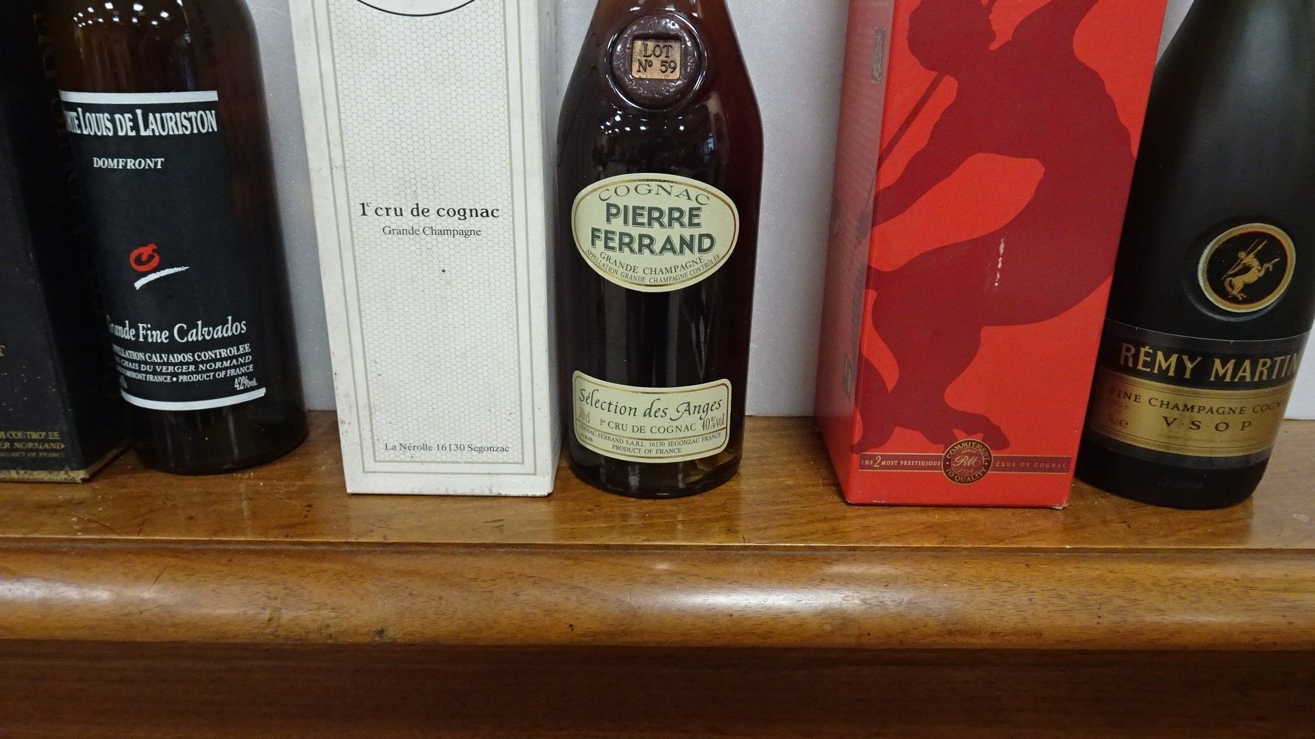Lot de 3 Bts : 1/Cognac Pierre Ferrand. Sélection des Anges + 1/Cognac Rémy Martin. VSOP + 1/Grande Fine Calvados. Comte Louis de Lauriston. Domfront. Dans leurs boîtes
