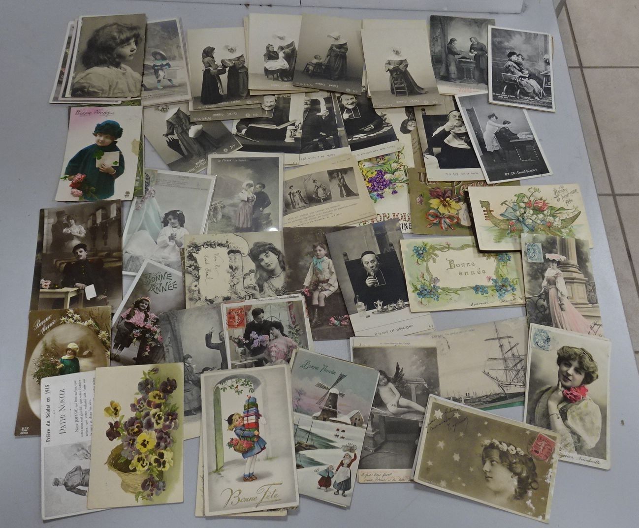Carton d'environ 750 cartes postales anciennes : Fantaisie d…