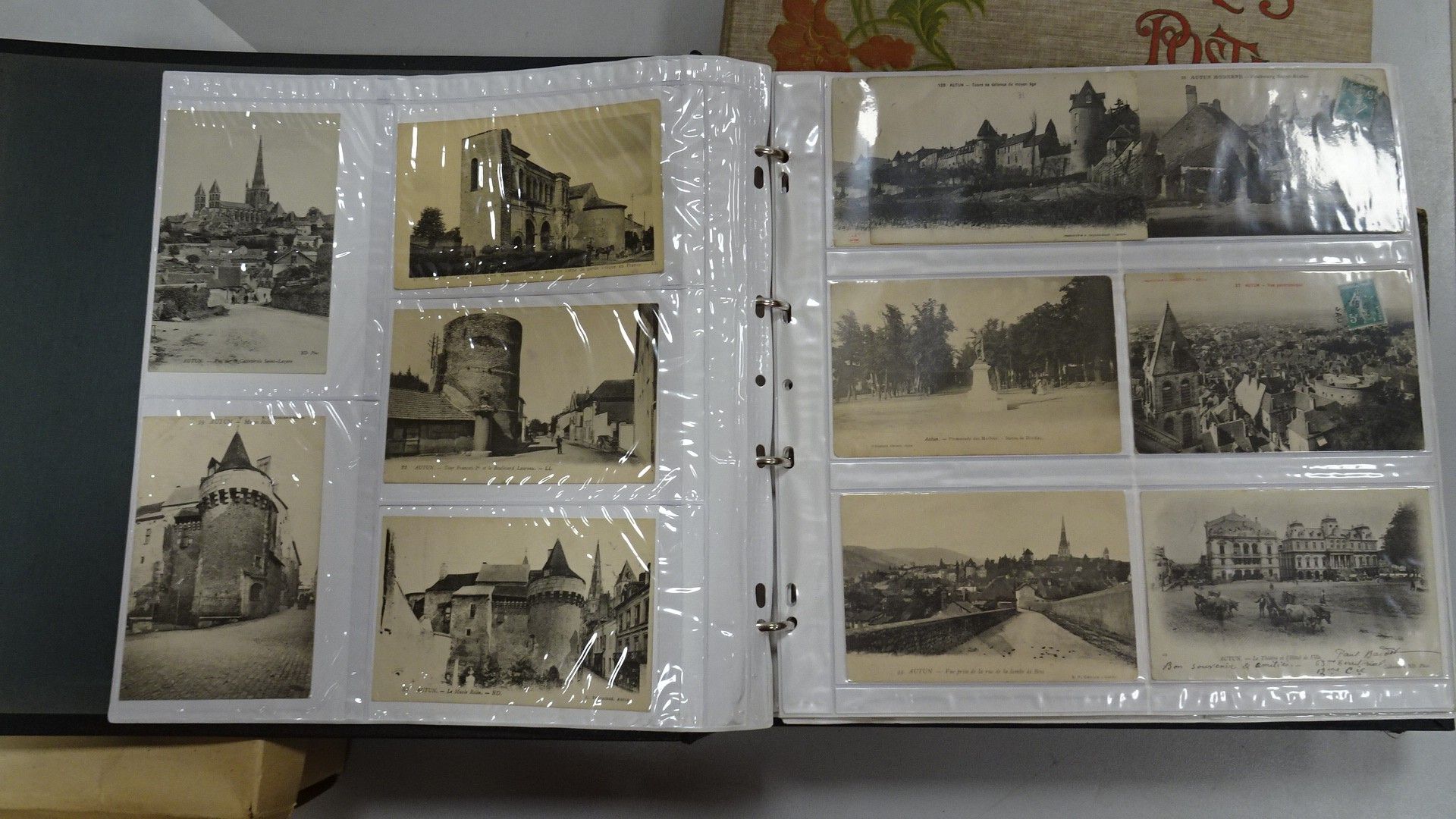 Album de cartes postales anciennes : Saône et Loire et Nièvre. Autun, Le Creusot, Sully, Blanzy, Toulon sur Arroux, couches....
