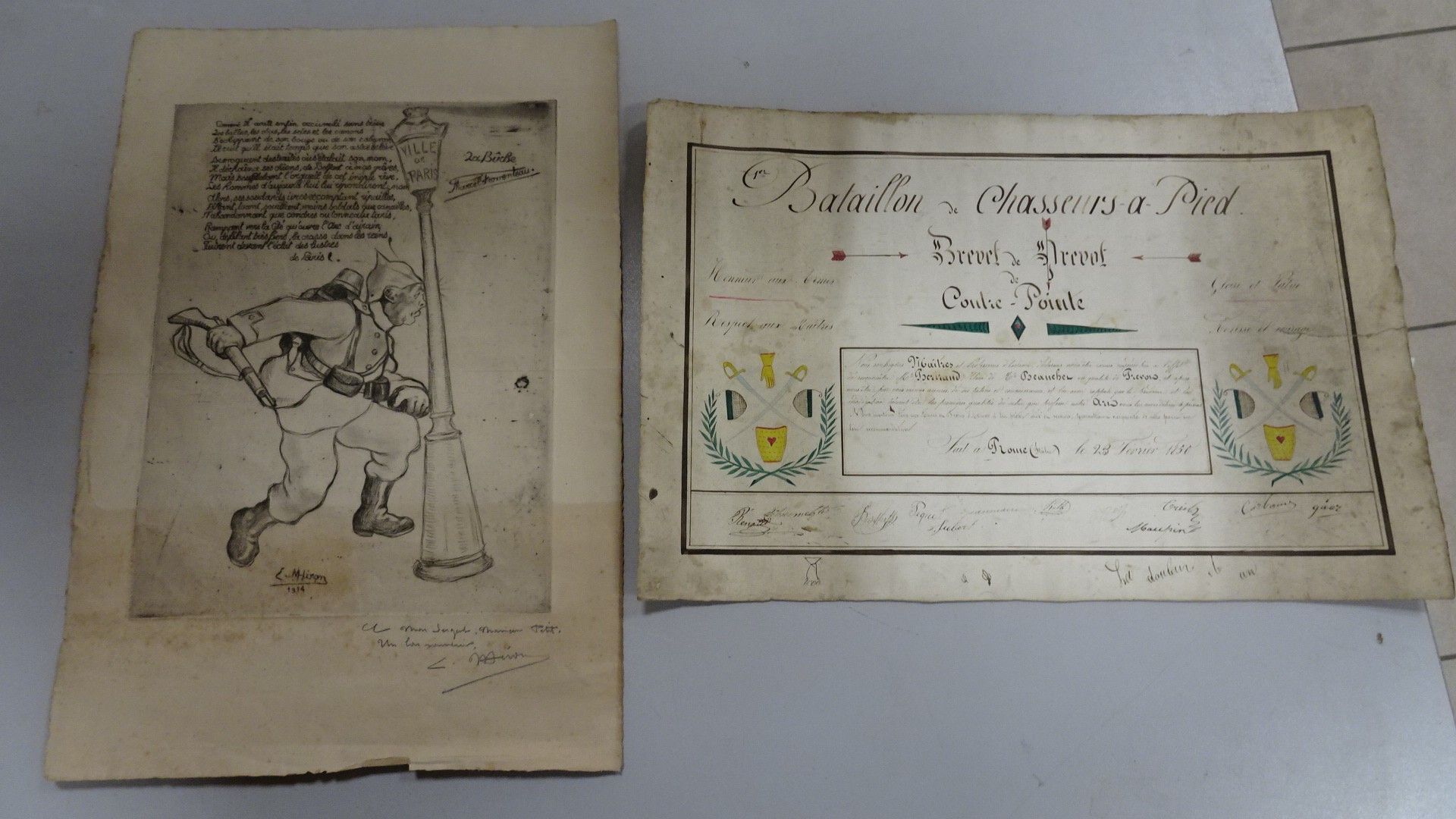 Lot de Gravures, Photos, diplômes, essentiellement Militaire…