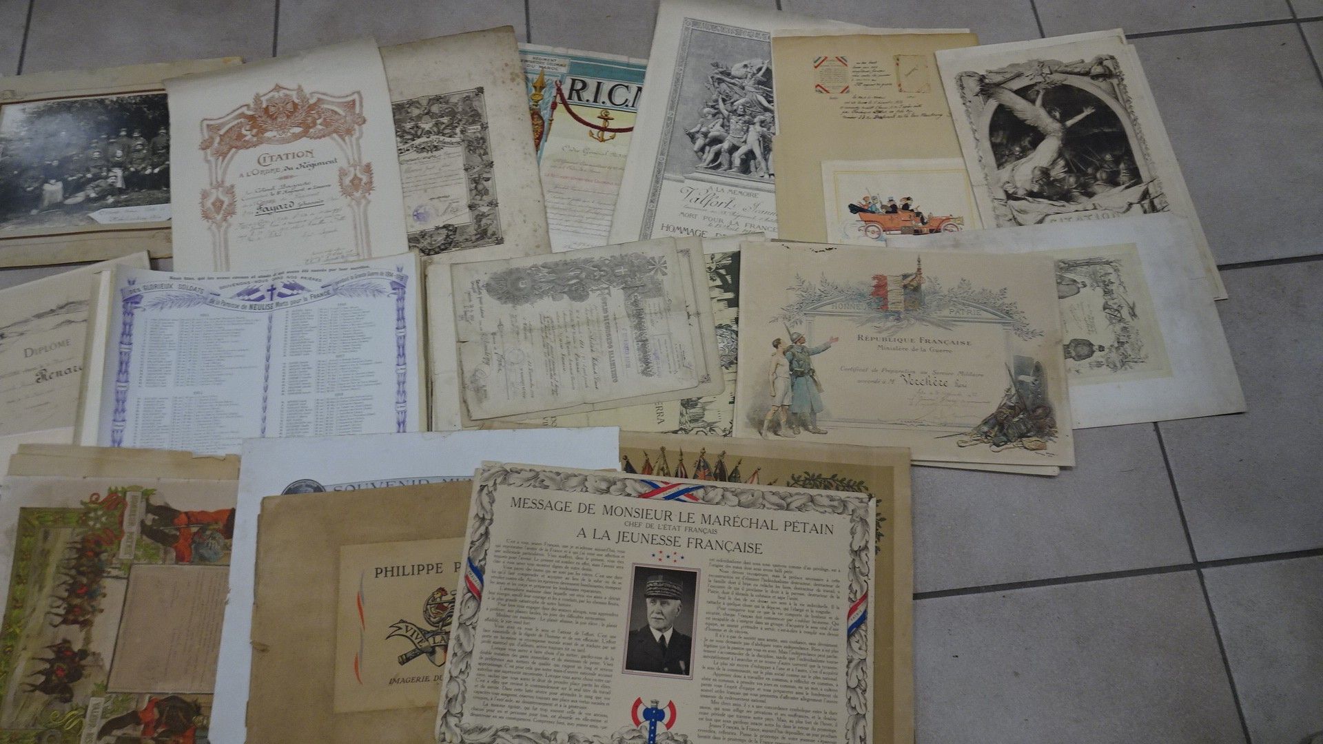 Lot de Gravures, Photos, diplômes, essentiellement Militaires