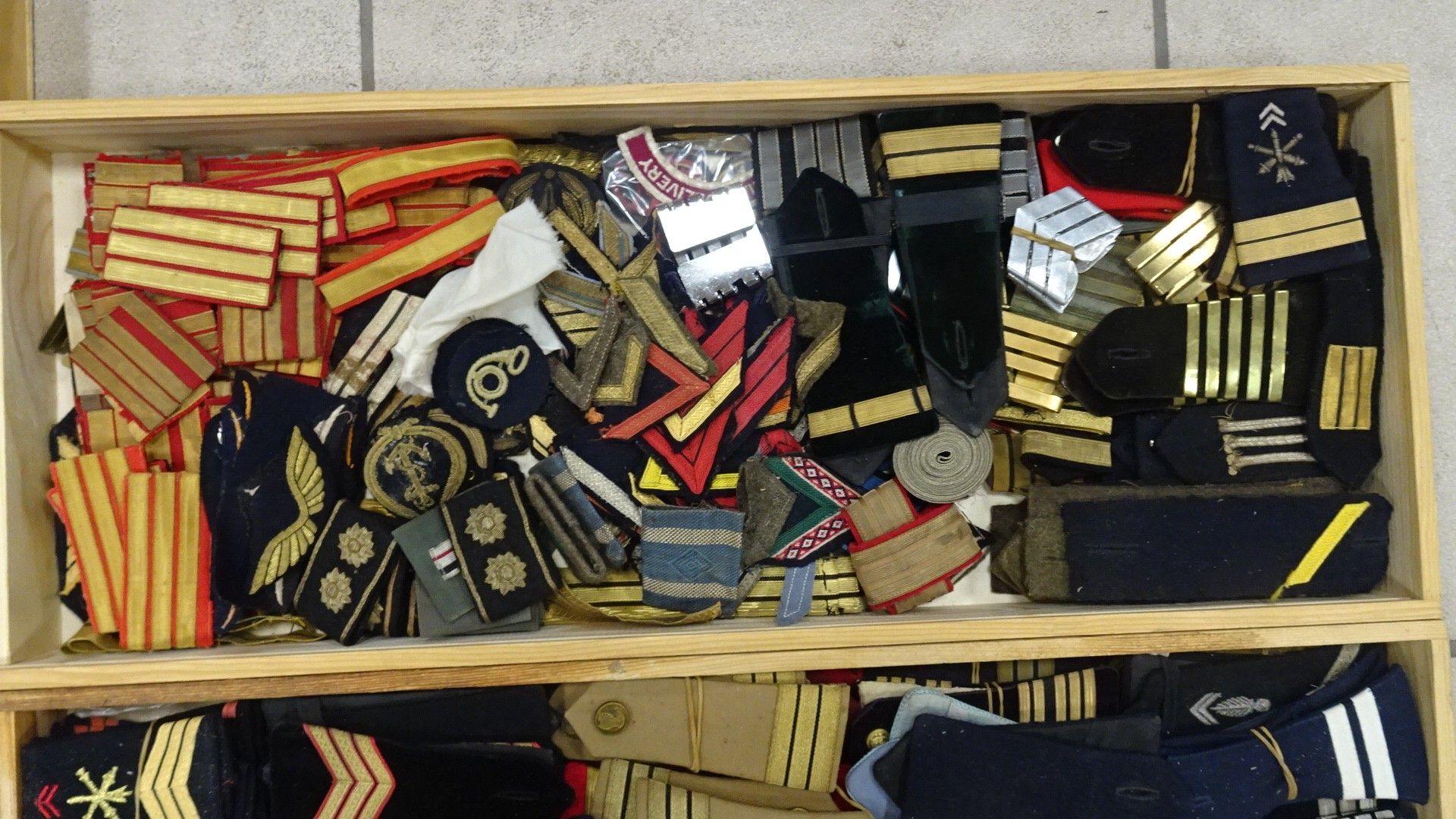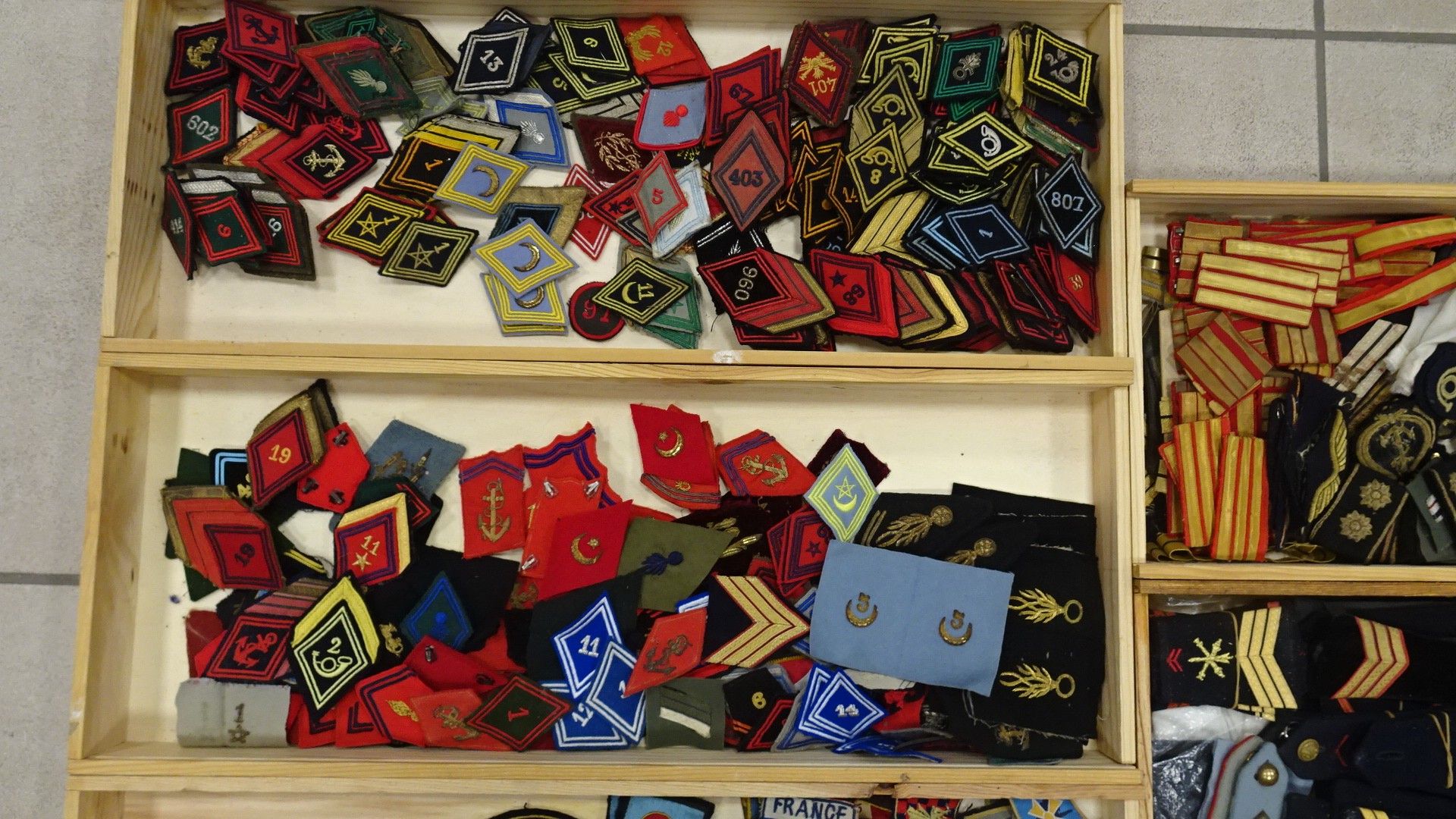 5 Boîtes d'insignes tissu : Pattes de col, galons, grades, é…