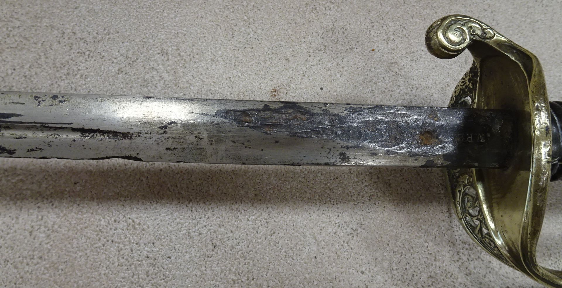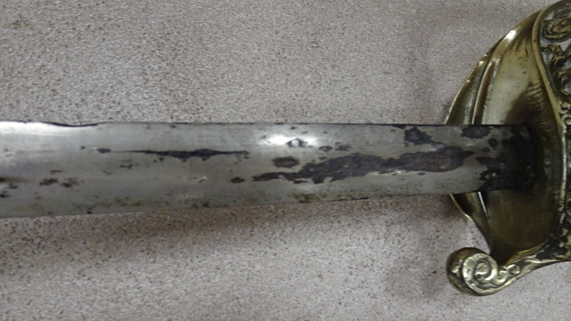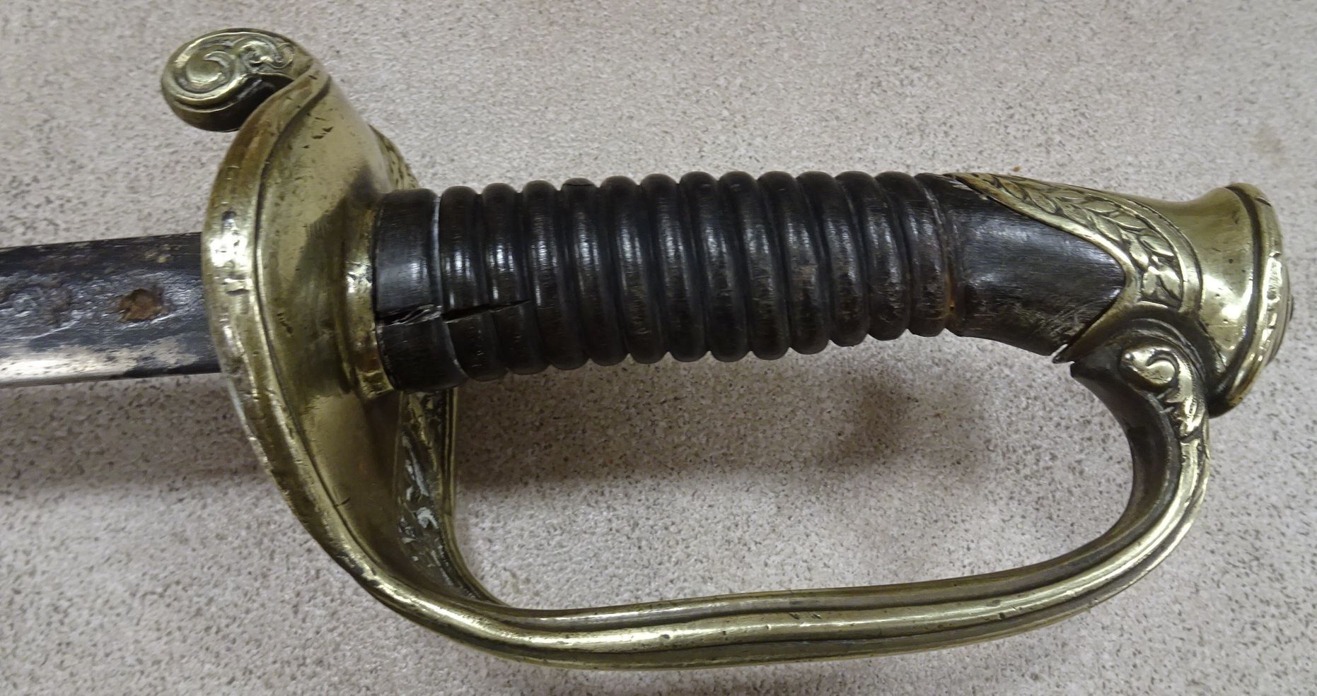 Sabre, poignée en bronze ajouré. Lame oxydée) Poignée en corne (fendue) Long 100 cm