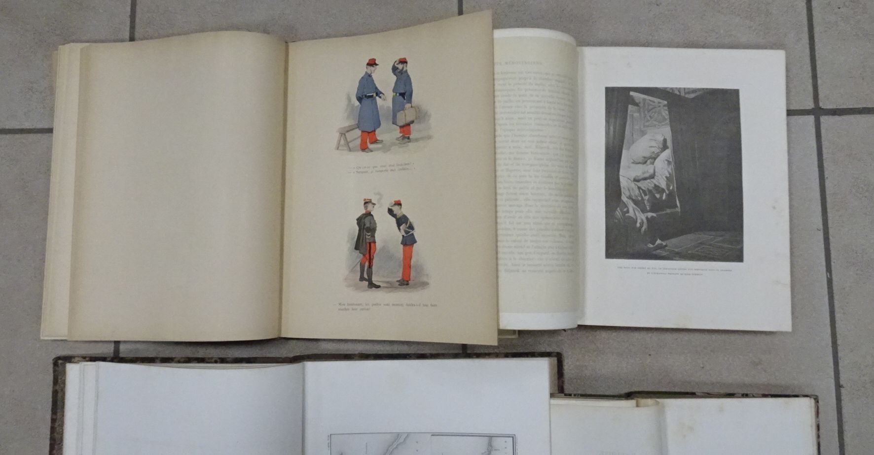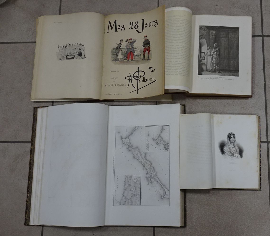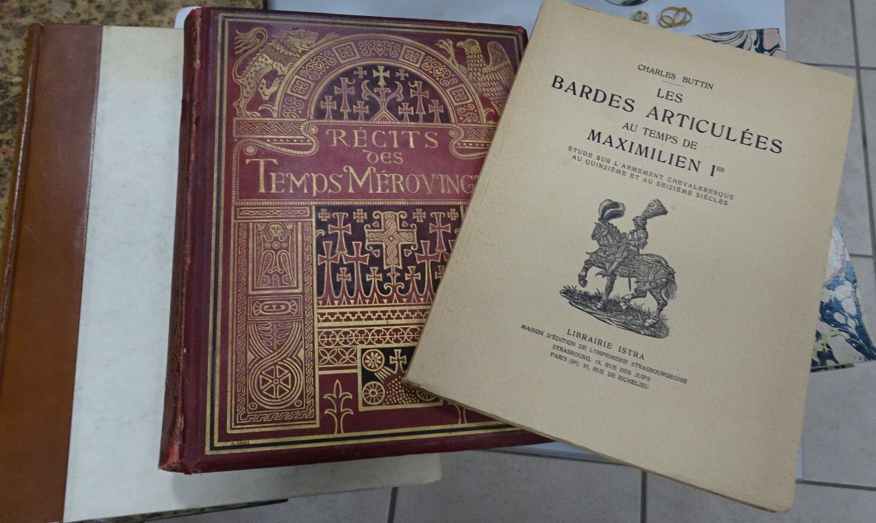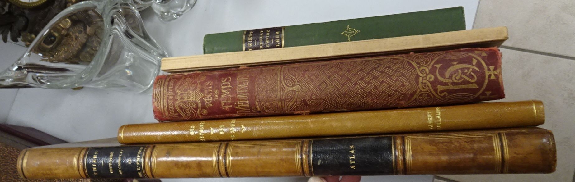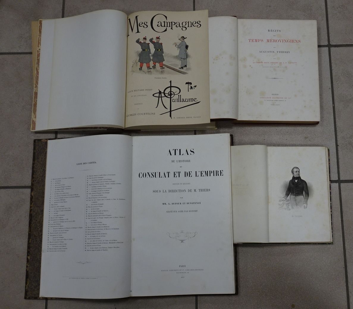 Lot de Livres : Les Bardes articulés au temps de Maximilien 1er par Charles BUTTIN + Mes Campagnes, mes 28 jours Par A. GUILLAUMR + Récits des Temps Mérovingiens par Augustin THIERRY + Album du Consulat et de l'Empire par THIERS. 60 portraits da'après Raffet. 1845 + L'Atlas de l'Histoire du Consulat et de l'Empire par THIERS. 1859