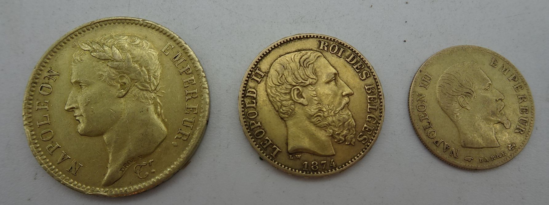 Lot de 3 pieces en or :1/40 francs de 1811 + 1/20 francs de 1874 et 1/10 francs 1859