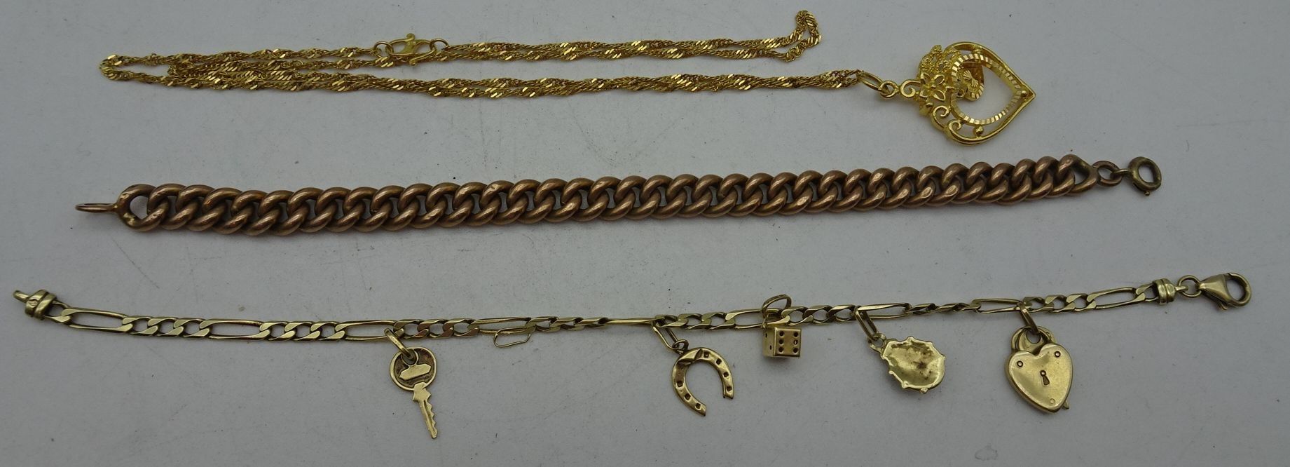 Lot de bijoux en or bracelet gourmette et chaine en or 24 ct avec pendentif 23g