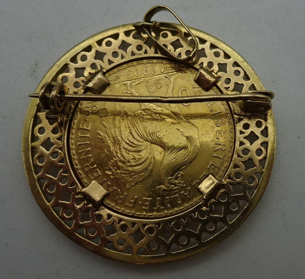 Broche-pendentif en or ornée d'une pièce de 20 Francs or.