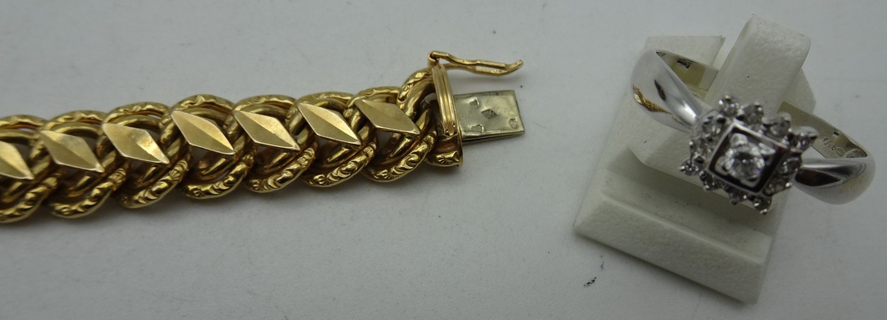 Lot de Bijoux en or : Gourmette, Bague ornée de diamants et …