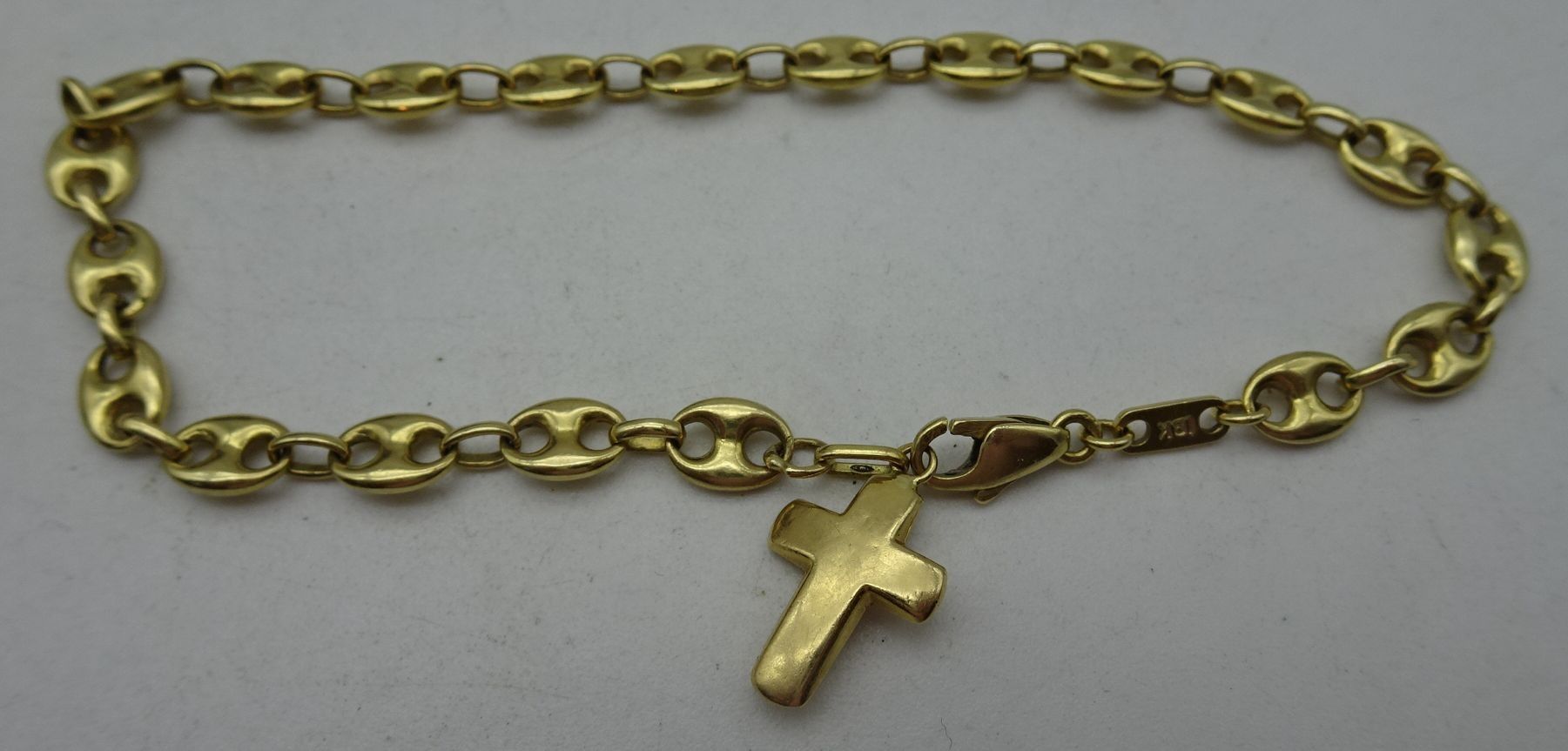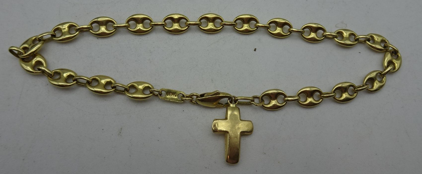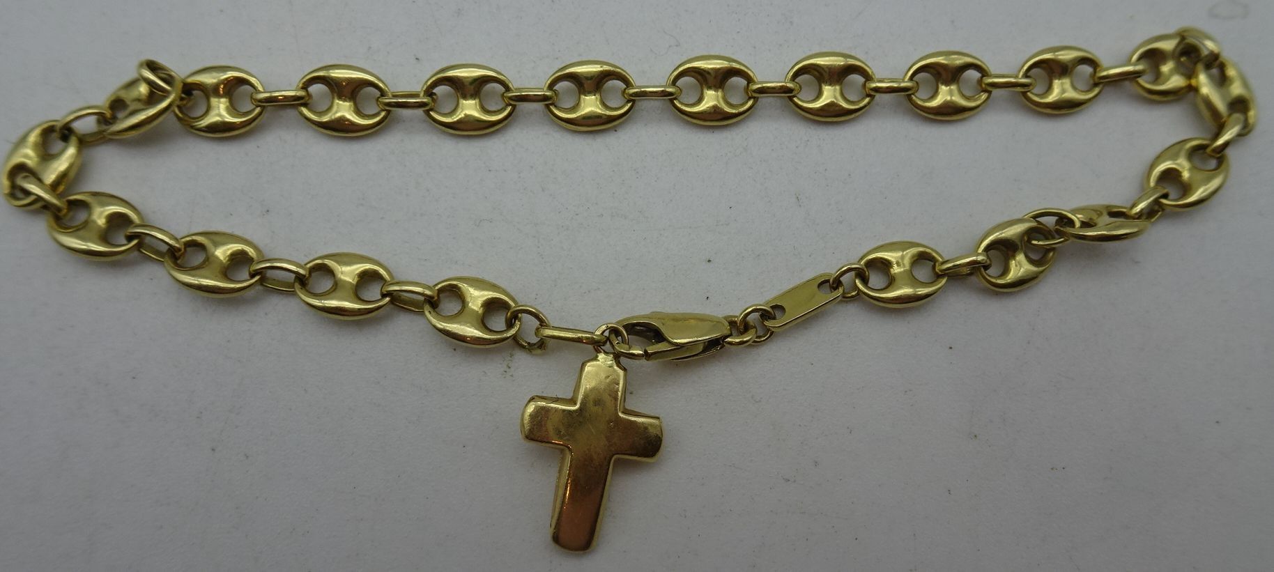 Bracelet en or avec pendeloque croix en or. 13,4 g