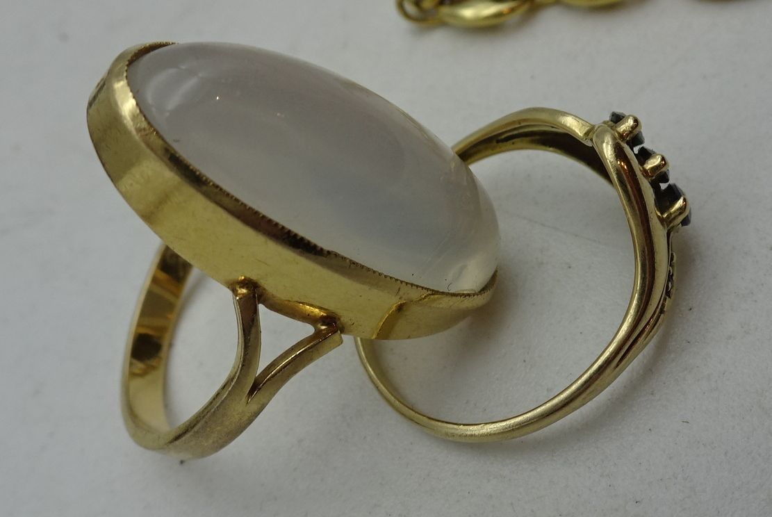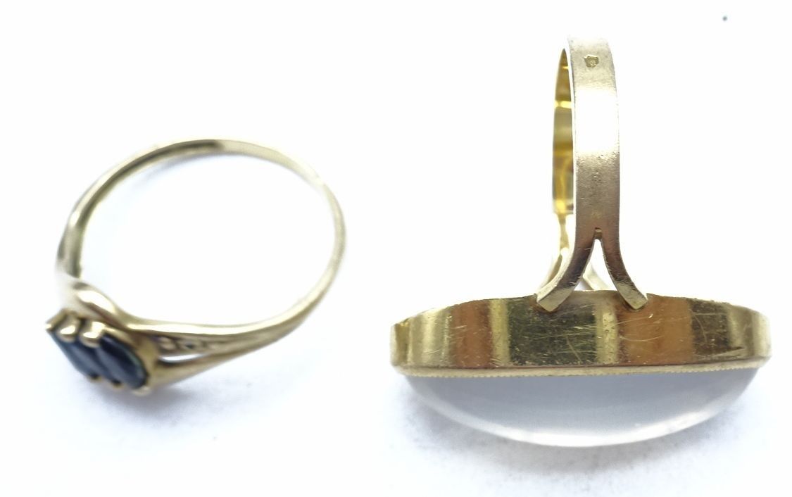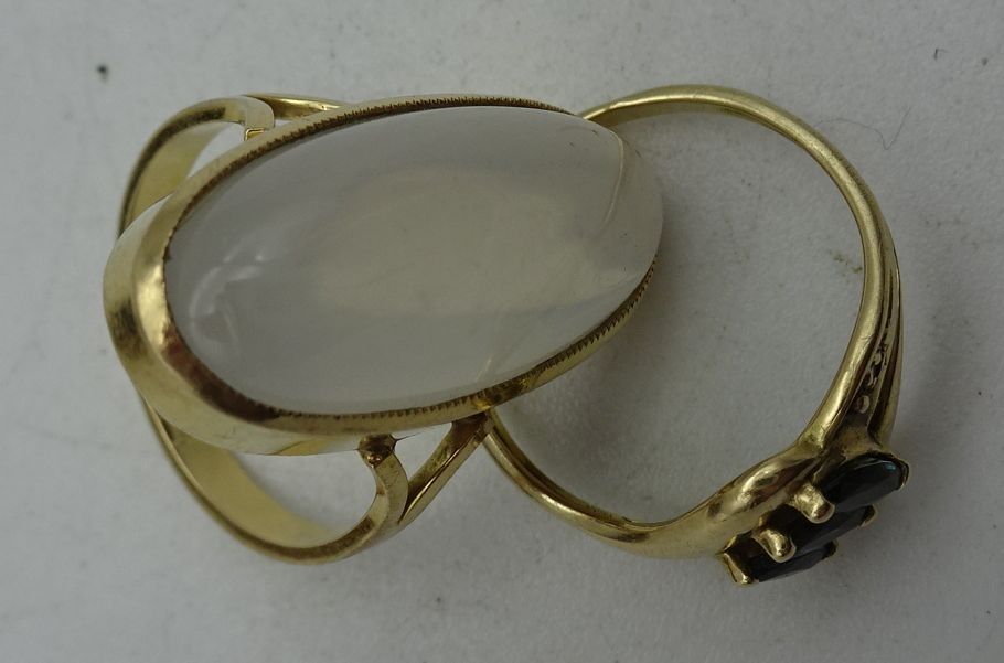 Deux bagues en or ornées de pierres. 10,4 g brut