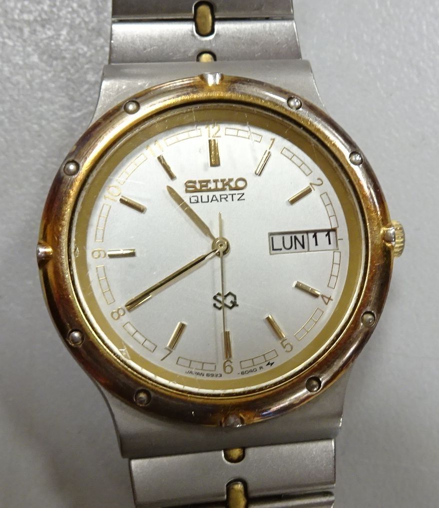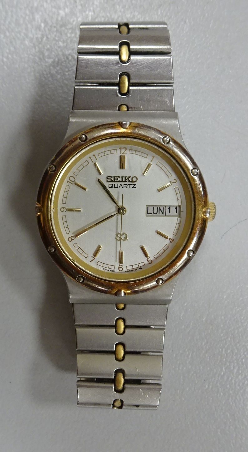 SEIKO. Montre acier et métal doré. SQ. Avec dateur. Quartz. Diam 33 mm