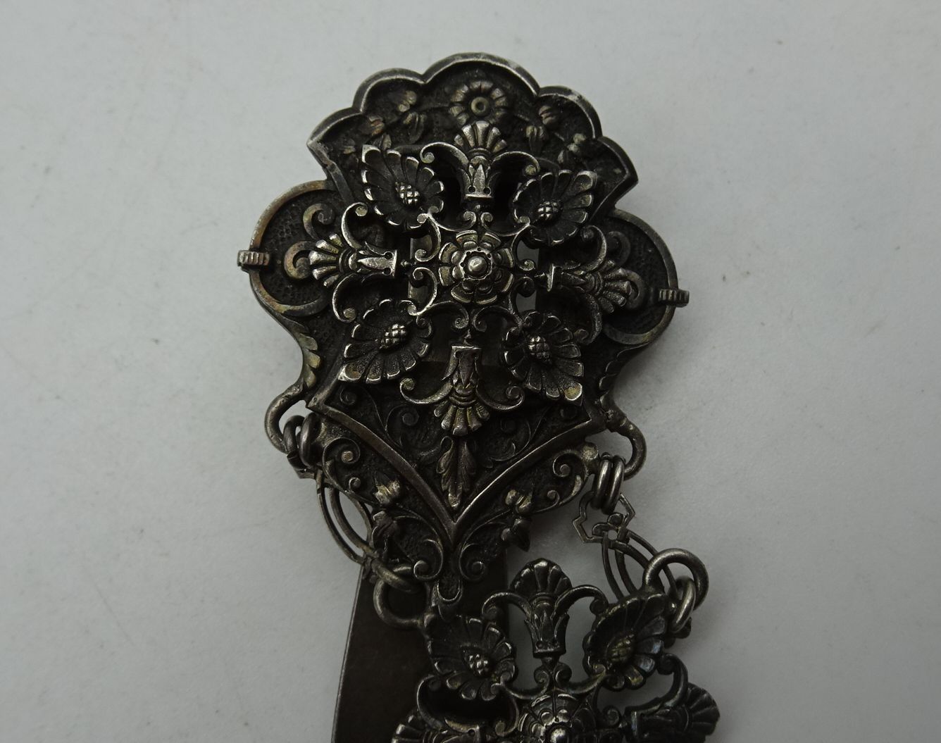 Châtelaine en métal argenté à décor ajouré de fleurs et feui…