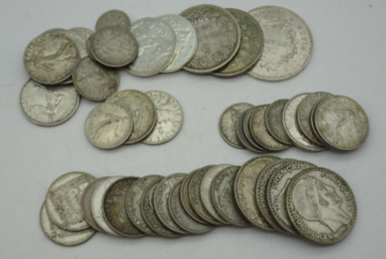 Lot de pièces en argent 100, 50, 10, 5, 1 et 0,5 francs 196g + 4 pièces 20 francs turin et 14 de 10 francs turin