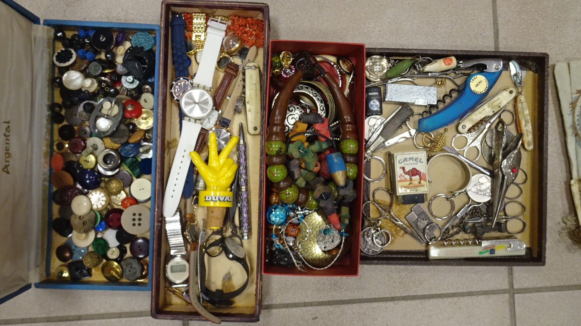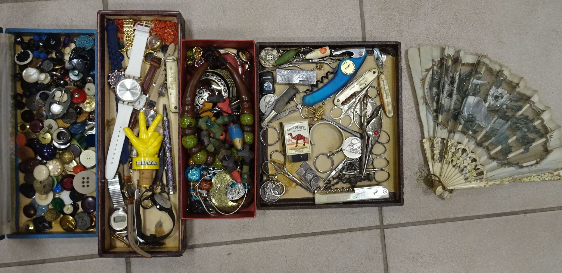Lot de Montres + Bijoux fantaisie + Couteaux, tire-bouchons et boutons