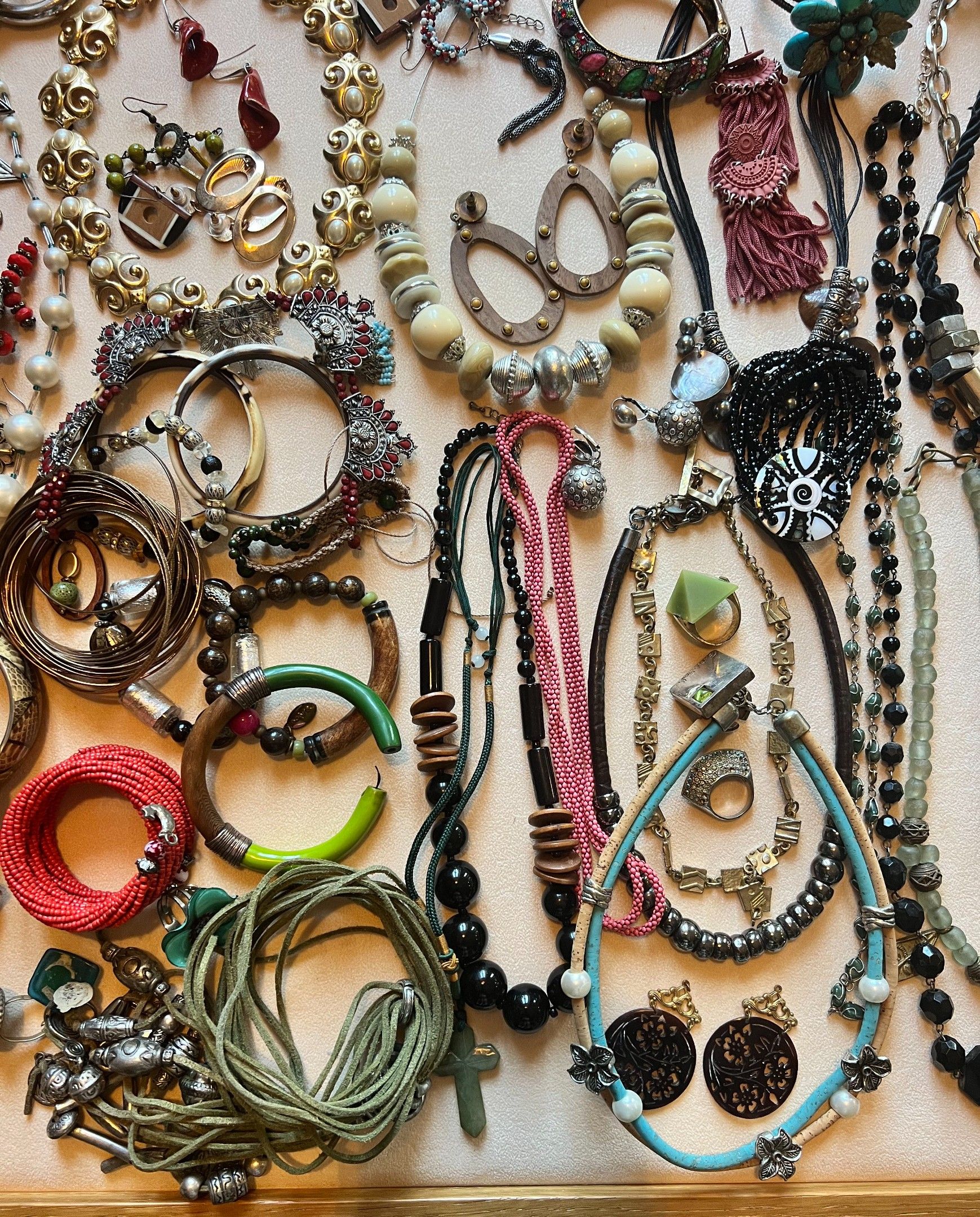 Lot de bijoux fantaisie : Colliers, bracelets, boucles d'oreilles