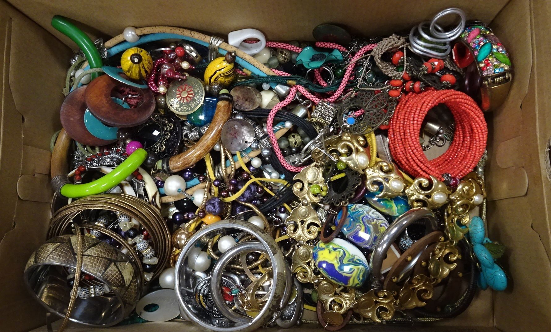 Lot de bijoux fantaisie : Colliers, bracelets, boucles d'ore…