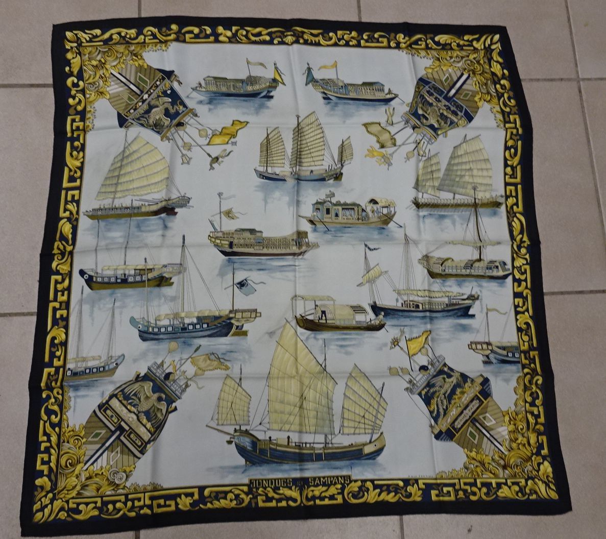 HERMES. Paris. Carré en soie. Jonques et Sampans. F. de la Perrière