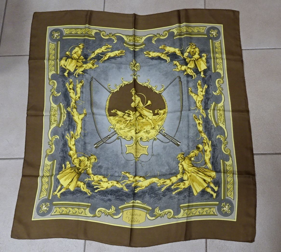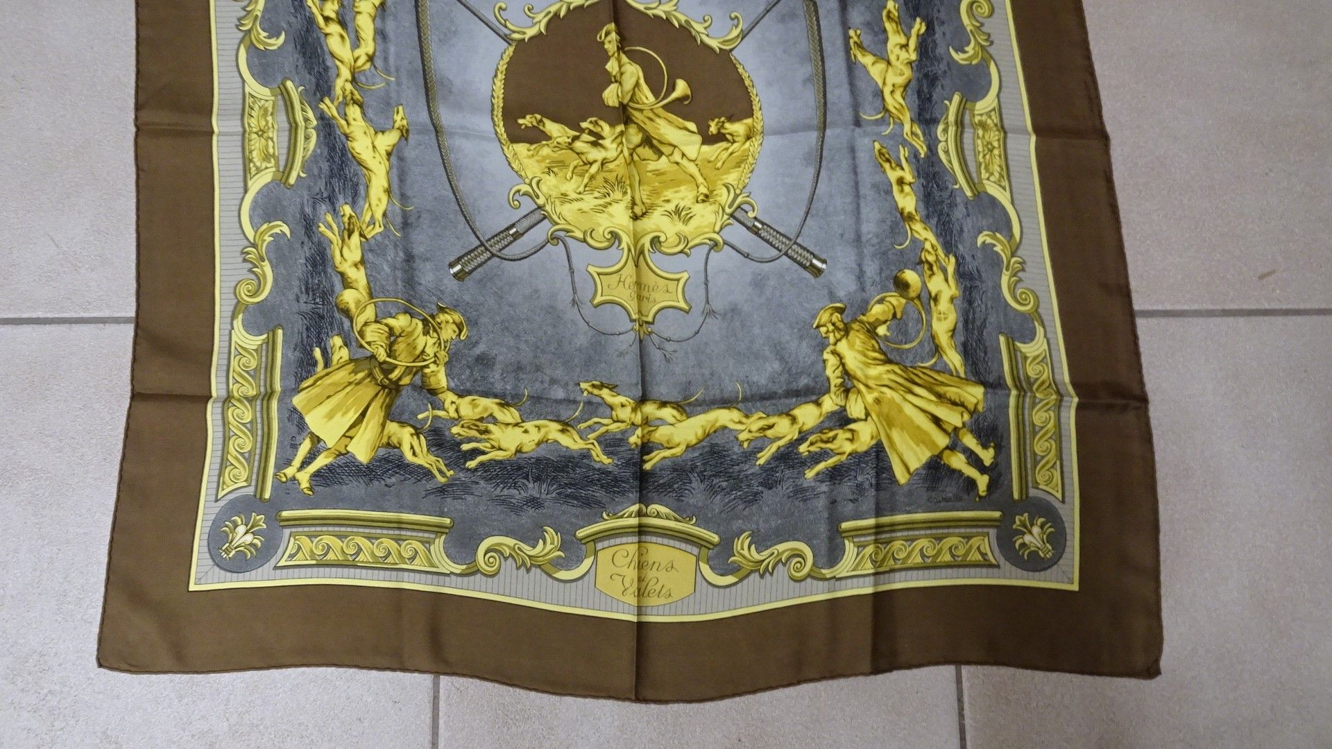 HERMES. Paris. Carré en soie. Chiens et Valets.
