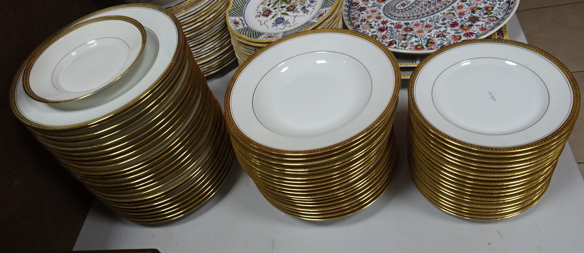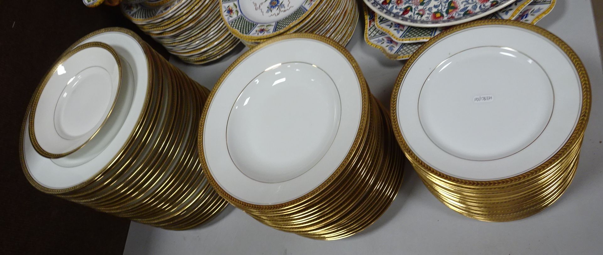 LIMOGES. CH. FIELD. HAVILAND. Modèle Elysée. Service de table en porcelaine blanche et or comprenant 24 assiettes plates, 18 creuses et 18 à dessert