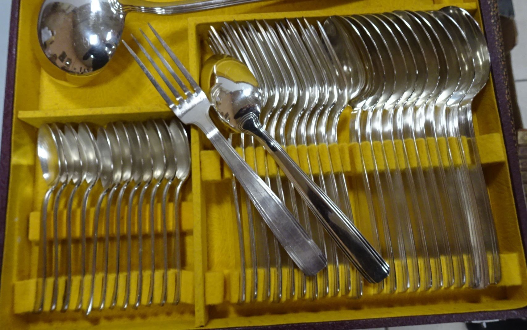 Ménagère en métal argenté. Années 40. Dans son écrin
