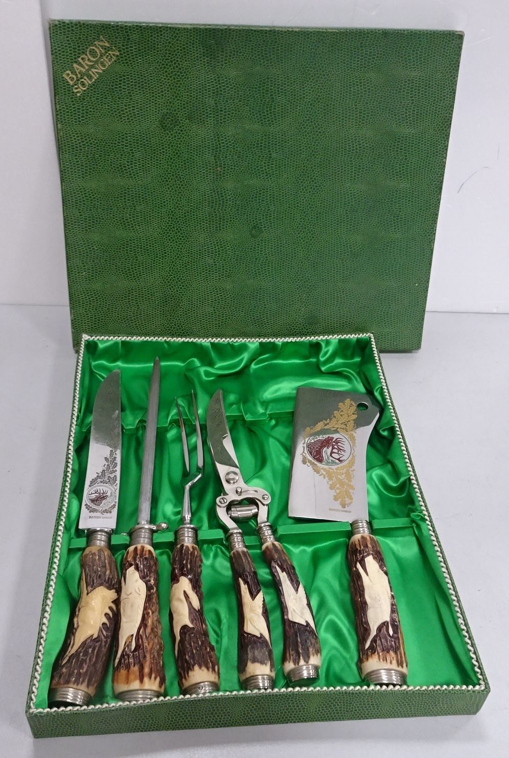 SOLINGEN. Baron. Service à découper en inox et bois de cerf.