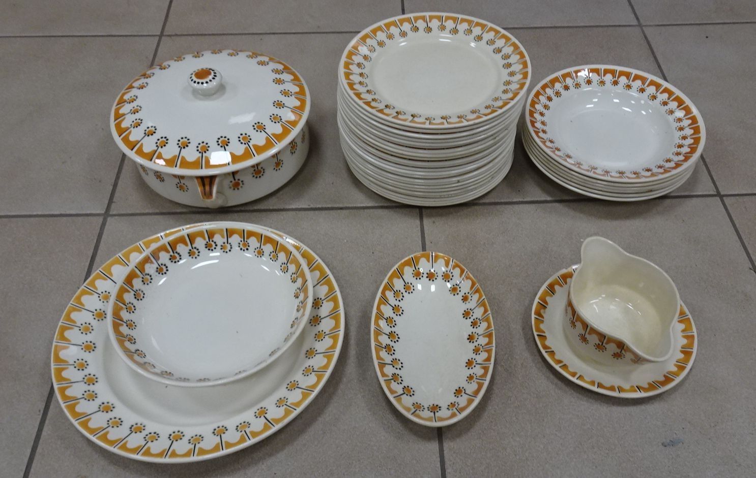 BADONVILLER. Modèle Radio. Partie de service de table en faïence dont 23 assiettes plates (éclats)