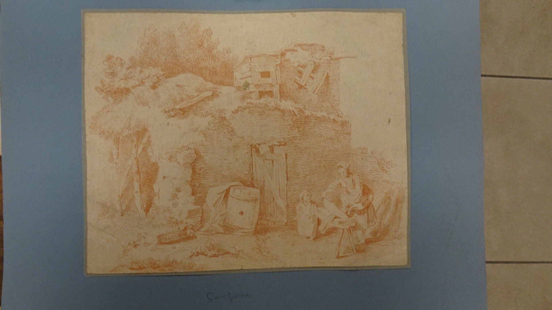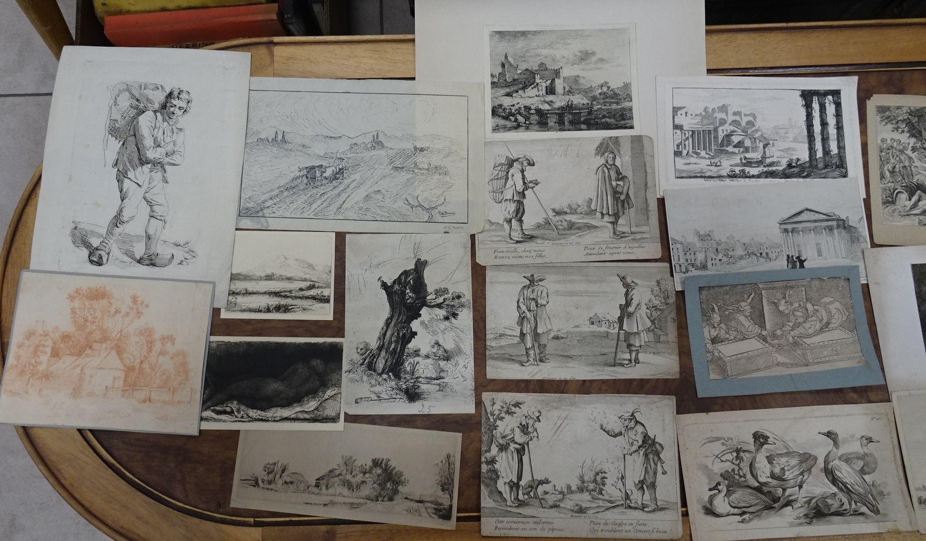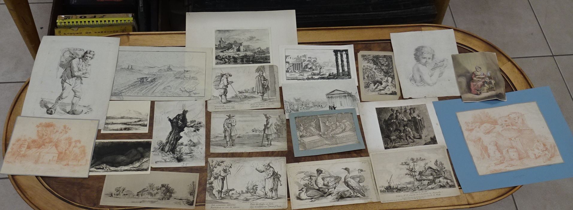 Lot de gravures anciennes, crayons et sanguine. 18 x 23 cm environ