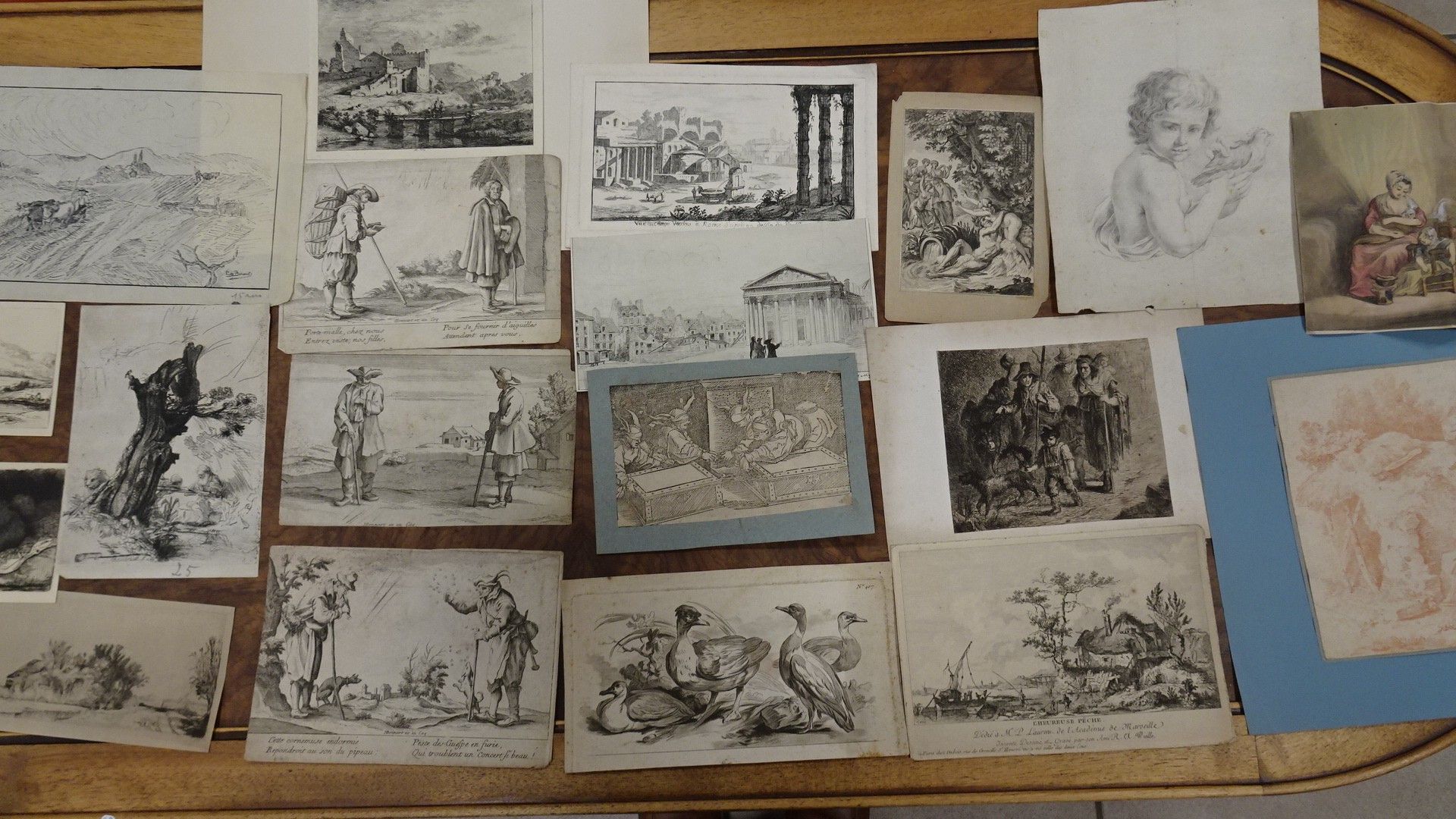 Lot de gravures anciennes, crayons et sanguine.