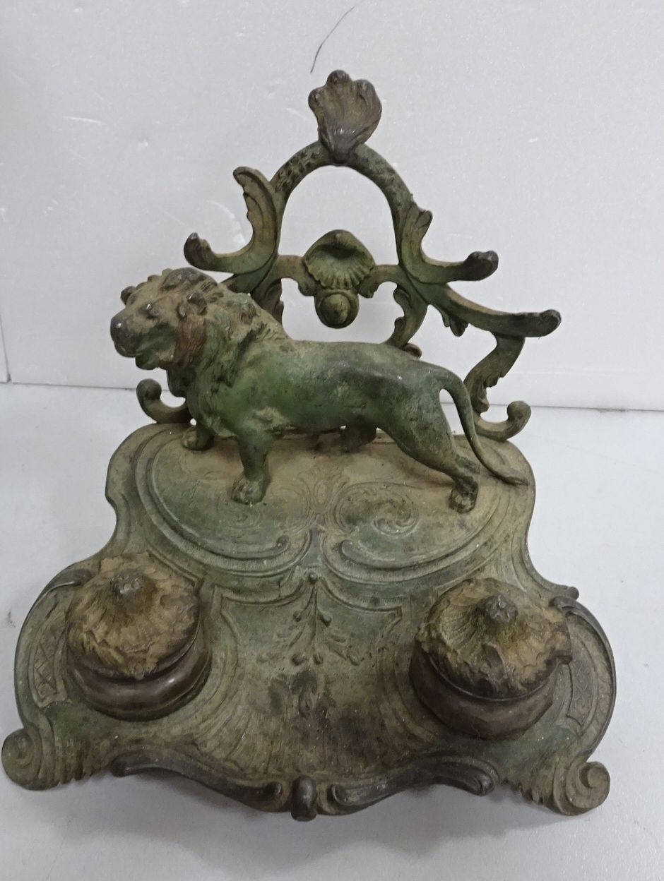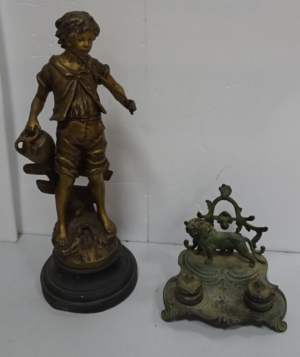 Sujet en régule représentant un jeune garçon Haut 47 cm + Encrier en régule