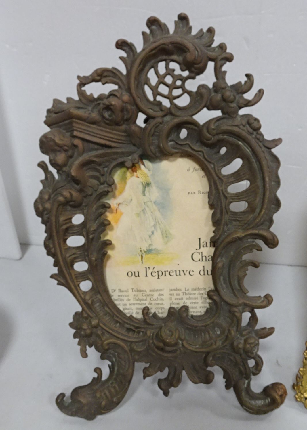 2 Porte-photos en bronze à décor de coquille ajourée et guir…