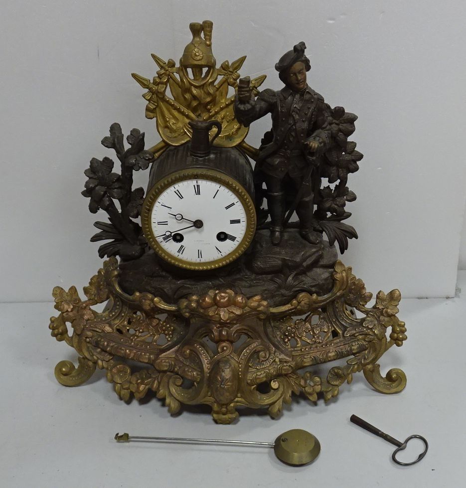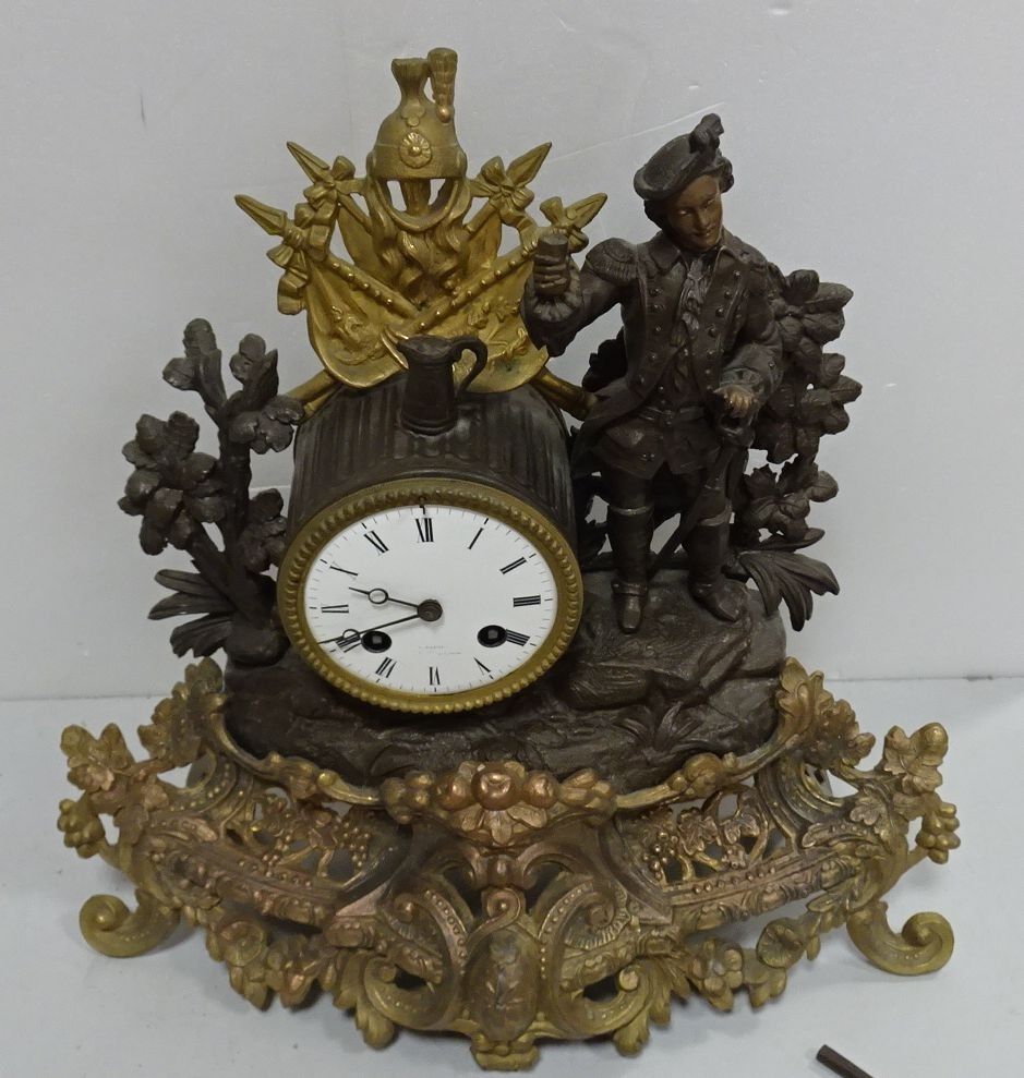 Pendule en régule à double patine à décor de gentilhomme; Fi…