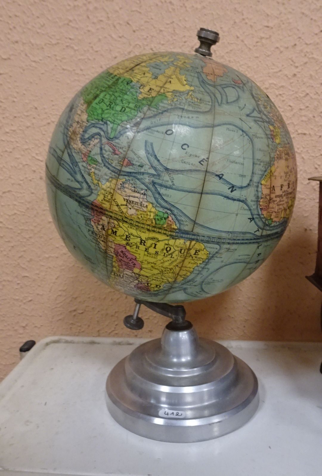 Globe terrestre, pied aluminium.
