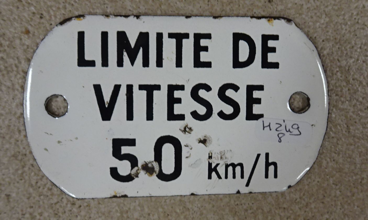 Plaque émaillée. Limite de vitesse 50 km/h.
