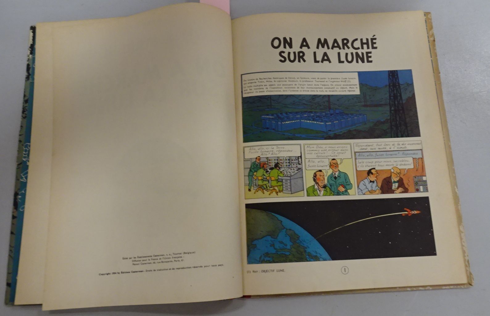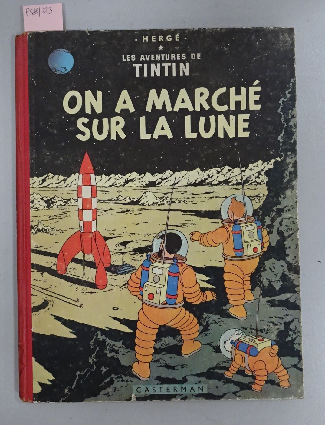 Hergé. TINTIN. On a marché sur la lune. 4ème plat B11. 1954. Imprimé en Belgique.(usures sur la couverture, intérieur propre)
