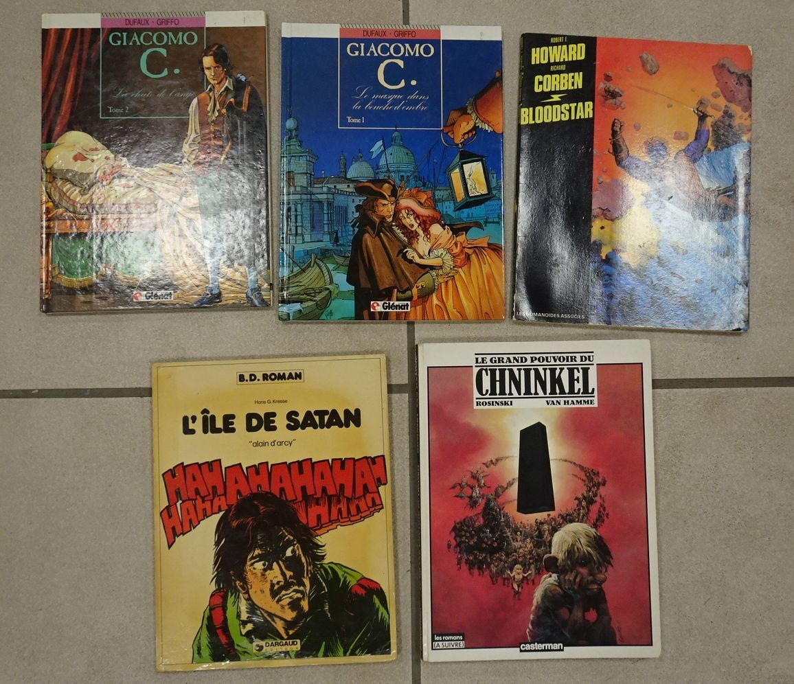 Lot de 5 Albums : Le grand pouvoir de Chninkel. E.O. - Giacomo C. Tome2. E.O. + Giacomo C. Tome 1 + Howard Corben Bloodstar + Alain d'Arcy. L'île de Satan